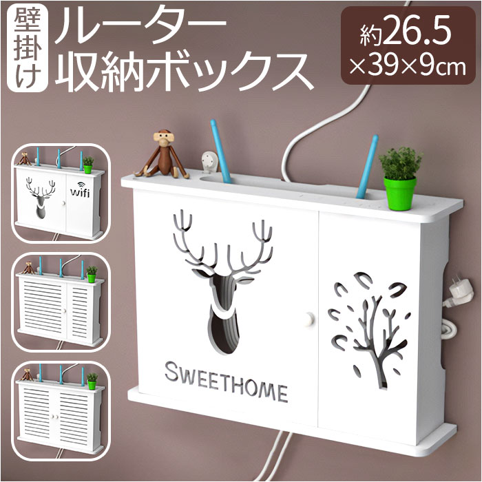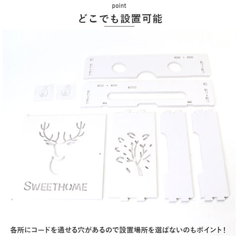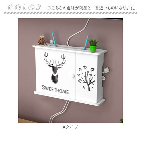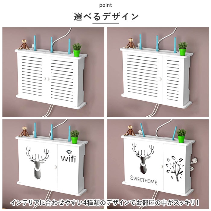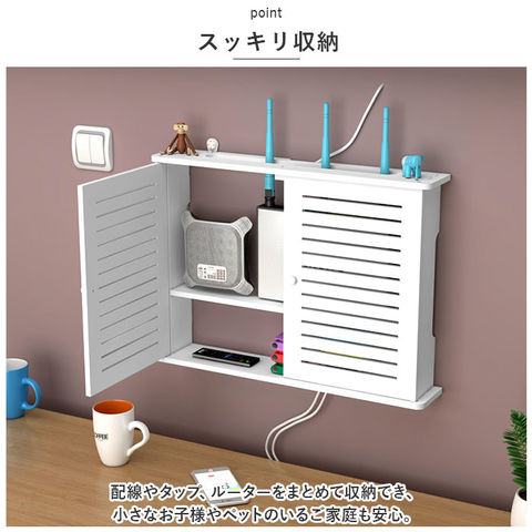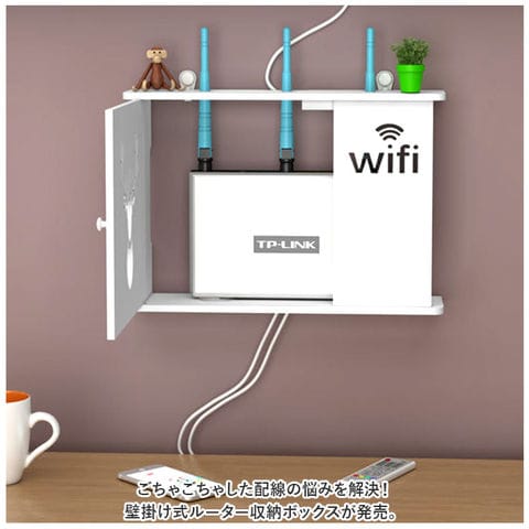 | 商品説明 | ごちゃごちゃした配線の悩みを解決!壁掛け式ルーター収納ボックスが発売。【スッキリ収納】配線やタップ、ルーターをまとめて収納でき、小さなお子様やペットのいるご家庭も安心。【取り付け簡単】ネジで固定するだけなので組み立て簡単。壁掛け用に粘着フックとピンフック、2種類の固定フック付き。【どこでも設置可能】各所にコードを通せる穴があるので設置場所を選ばないのもポイント!【機能性抜群】上部に穴が開いているので、電波を妨害しない設計。底面にも穴があいているので熱がこもる心配もナシ!【選べるデザイン】インテリアに合わせやすい4種類のデザインでお部屋の中がスッキリ! |