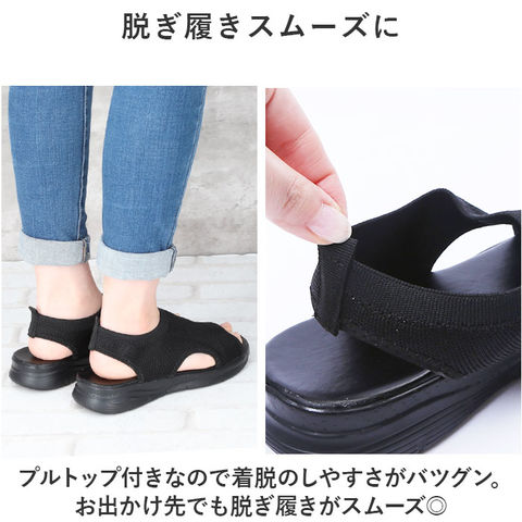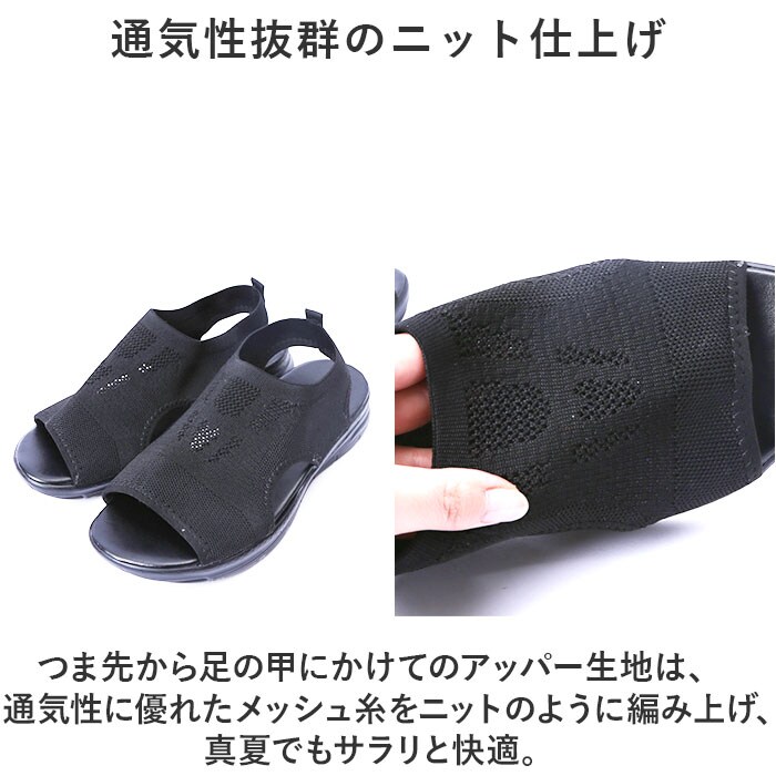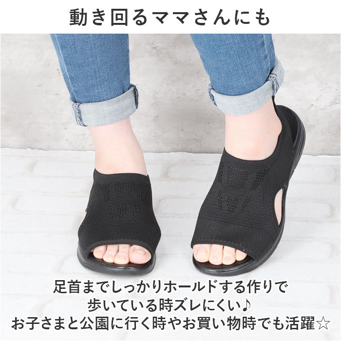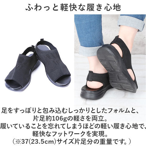 | 商品説明 | ふわっと軽いレディースサンダルが新発売♪【通気性抜群のニット仕上げ】つま先から足の甲にかけてのアッパー生地は、通気性に優れたメッシュ糸をニットのように編み上げ、真夏でもサラリと快適。【ふわっと軽快な履き心地】足をすっぽりと包み込むしっかりとしたフォルムと、片足約106gの軽さを両立。履いていることを忘れてしまうほどの軽い履き心地で、軽快なフットワークを実現。(※37(23.5cm)サイズ片足分の重量です。)【動き回るママさんにも】足首までしっかりホールドする作りで歩いている時ズレにくい♪お子さまと公園に行く時やお買い物時でも活躍☆【滑りにくいアウトソール】溝を刻んだアウトソールが、雨に濡れた路面もしっかりとグリップ。【脱ぎ履きスムーズに】プルトップ付きなので着脱のしやすさがバツグン。お出かけ先でも脱ぎ履きがスムーズ◎ |