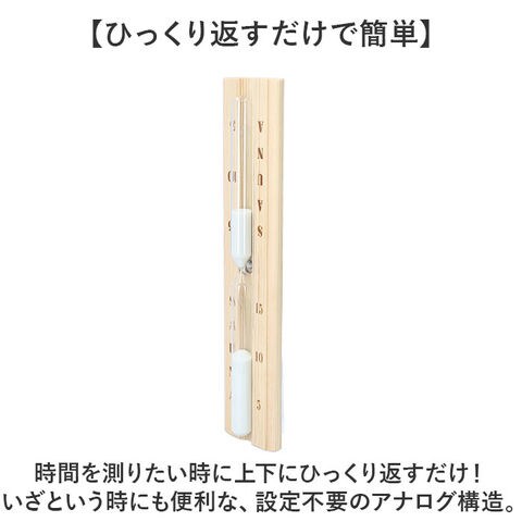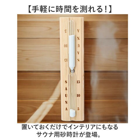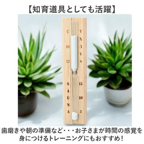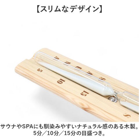 | 商品説明 | 【手軽に時間を測れる!】置いておくだけでインテリアにもなるサウナ用砂時計が登場。【ひっくり返すだけで簡単】時間を測りたい時に上下にひっくり返すだけ!いざという時にも便利な、設定不要のアナログ構造。【スリムなデザイン】サウナやSPAにも馴染みやすいナチュラル感のある木製。5分/10分/15分の目盛つき。【回転する背面板】お手持ちのネジで背面板を固定すれば、360度回転するのでひっくり返しやすい◎【知育道具としても活躍】歯磨きや朝の準備など・・・お子さまが時間の感覚を身につけるトレーニングにもおすすめ! |