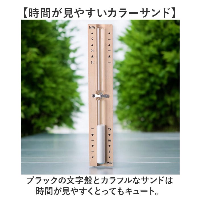 | 商品説明 | 【手軽に時間を測れる!】置いておくだけでインテリアにもなるサウナ用砂時計が登場。【ひっくり返すだけで簡単】時間を測りたい時に上下にひっくり返すだけ!いざという時にも便利な、設定不要のアナログ構造。【スリムなデザイン】サウナやSPAにも馴染みやすいナチュラル感のある木製。5分/10分/15分の目盛つき。【時間が見やすいカラーサンド】ブラックの文字盤とカラフルなサンドは時間が見やすくとってもキュート。【回転する背面板】付属のネジで背面板を固定すれば、360度回転するのでひっくり返しやすい◎【知育道具としても活躍】歯磨きや朝の準備など・・・お子さまが時間の感覚を身につけるトレーニングにもおすすめ! |