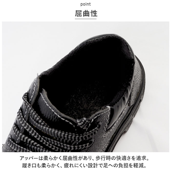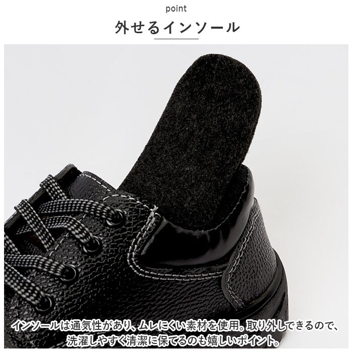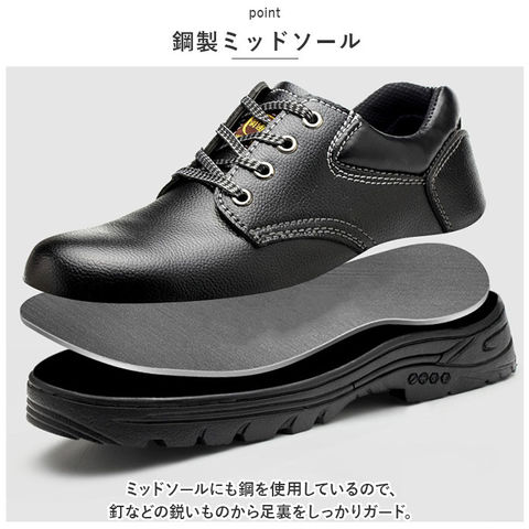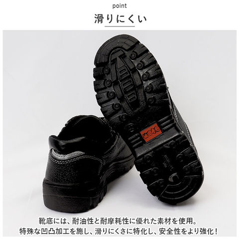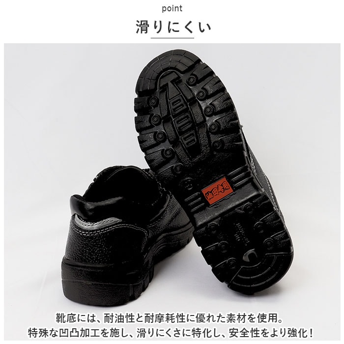 | 商品説明 | 安心構造の鋼製先芯!作業服にも合わせやすい作業靴が発売。【鋼製先芯】足をしっかりガードしてくれる鋼製先芯なので、現場作業などで大活躍!【鋼製ミッドソール】ミッドソールにも鋼を使用しているので、釘などの鋭いものから足裏をしっかりガード。【屈曲性】アッパーは柔らかく屈曲性があり、歩行時の快適さを追求。履き口も柔らかく、疲れにくい設計で足への負担を軽減。【着脱ラクラク】伸縮性のある靴紐を採用し、着脱しやすいのもポイント。作業を妨げないよう、細部にもこだわった一足。【滑りにくい】靴底には、耐油性と耐摩耗性に優れた素材を使用。特殊な凹凸加工を施し、滑りにくさに特化し、安全性をより強化!【外せるインソール】インソールは通気性があり、ムレにくい素材を使用。取り外しできるので、洗濯しやすく清潔に保てるのも嬉しいポイント。【シンプルなデザイン】作業服にも合わせやすいシンプルなデザインの作業靴はユニセックスで使え、普段使いにも◎ |