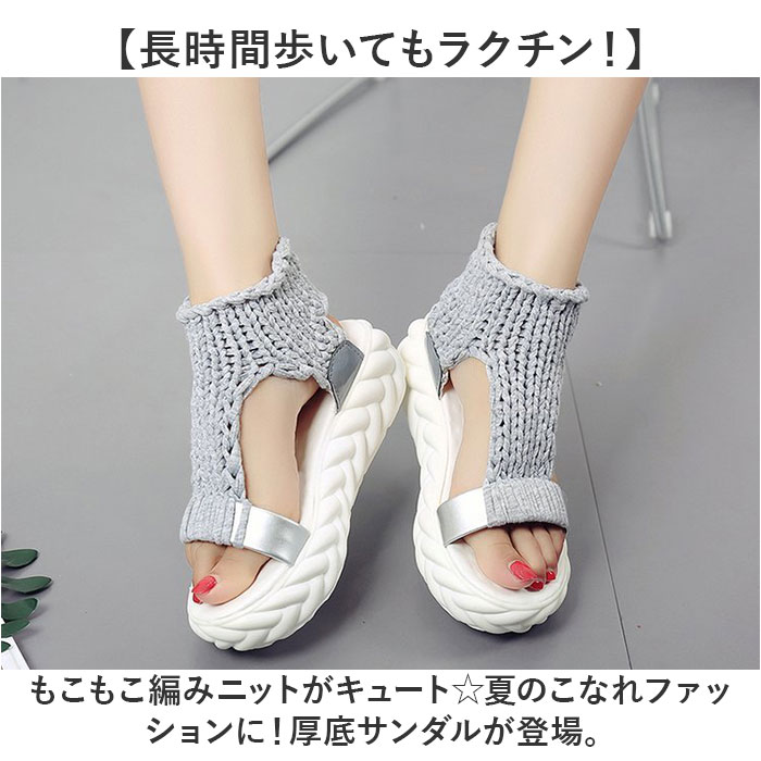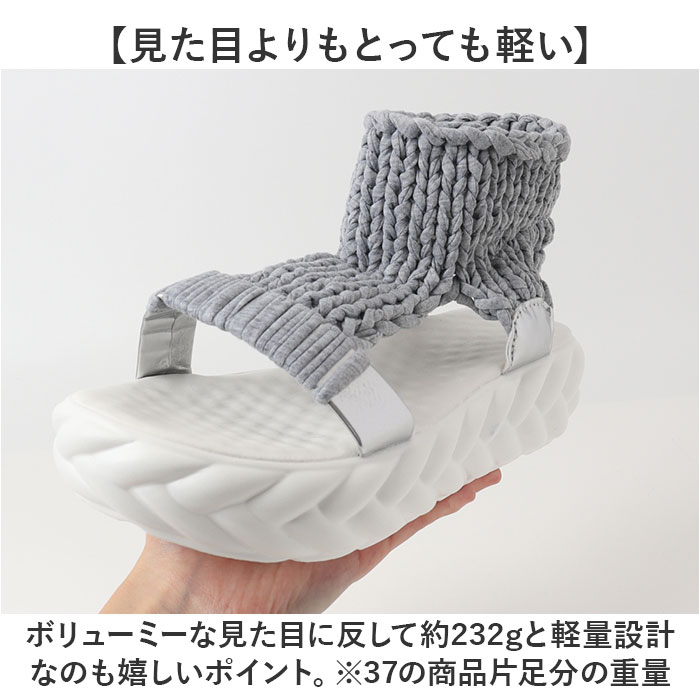 | 商品説明 | 【長時間歩いてもラクチン!】もこもこ編みニットがキュート☆夏のこなれファッションに!厚底サンダルが登場。【優しくホールドで疲れにくい】ニット生地は柔らかく、ほどよいホールド感。動きにフィットするから疲れにくくラクチン!【ムレにくいニット生地が気持ちいい】編み糸はTシャツ生地。通気性に優れムレにくく、快適な肌触り。夏に履いても爽やか♪【見た目よりもとっても軽い】ボリューミーな見た目に反して約232gと軽量設計なのも嬉しいポイント。※37の商品片足分の重量【滑りにくいから安心】ビーチやレジャーなど、水場でも滑りにくいよう、加工をON。厚底でも歩行が安定する。【シンプルカラーで合わせやすい】お洋服を選ばない、シンプルカラーが魅力。コーデのアクセントになるけど合わせやすい◎ |