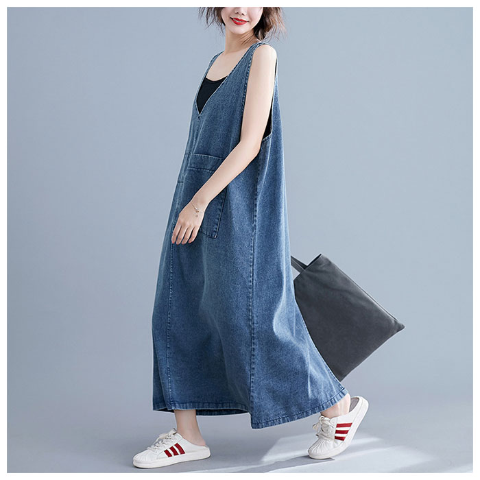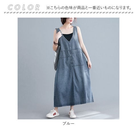 デニム サロペット ワンピース pmysaro01【ブルー】【Mサイズ】