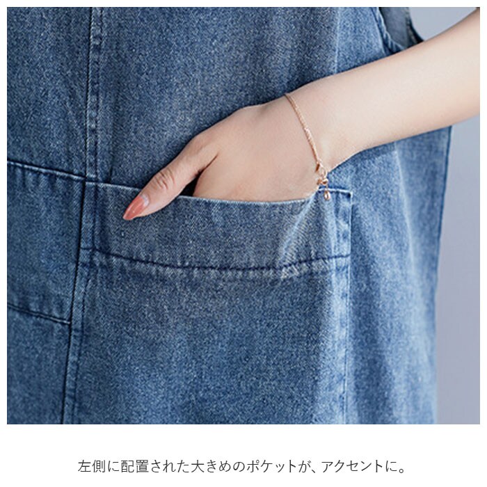 | 商品説明 | サラッと着こなせる♪デニムワンピースが登場。薄手のデニム素材を使用した、カジュアルな印象のワンピース。胸元はすっきりとした、深めのVネックデザイン。ゆったりとしたサイズ感で、ストレスフリーな着心地◎左側に配置された大きめのポケットが、アクセントに。バックスリット入りで、足捌きもラクラク。春夏はTシャツやノースリーブなど、秋冬はニットやシャツなど、お好みのアイテムと合わせて自由にレイヤード♪カーディガンなどを羽織ってもOK。オールシーズン活躍するアイテム◎ |