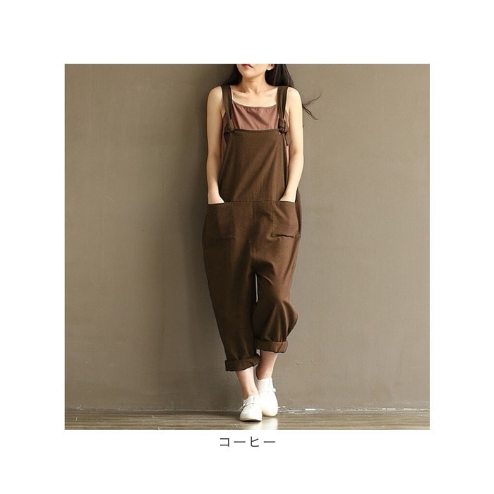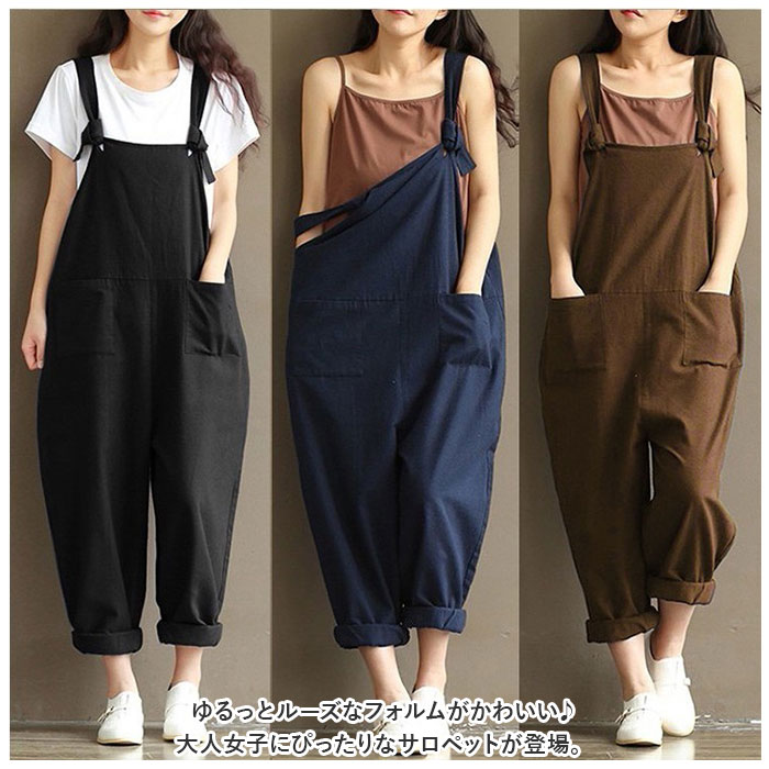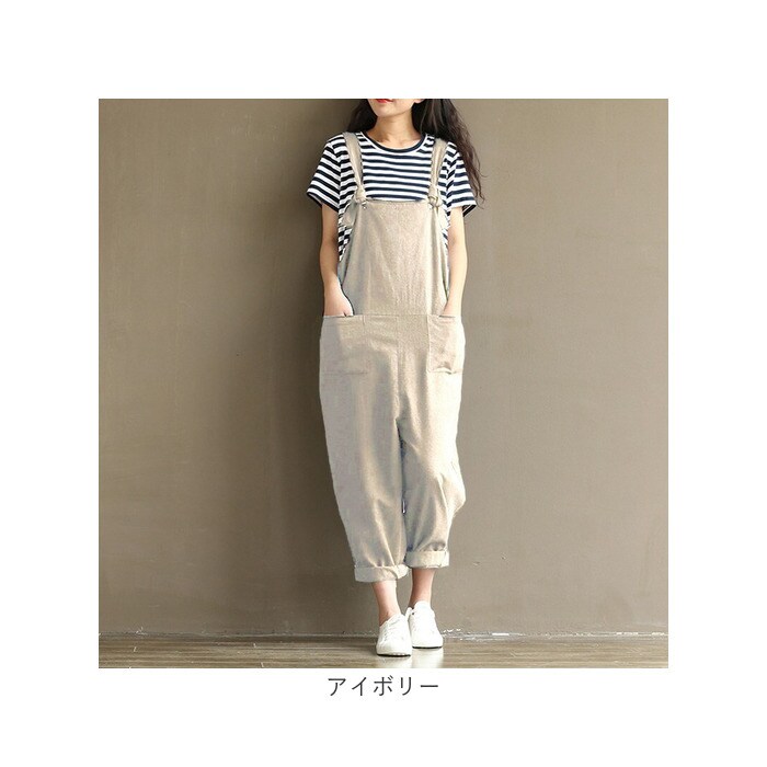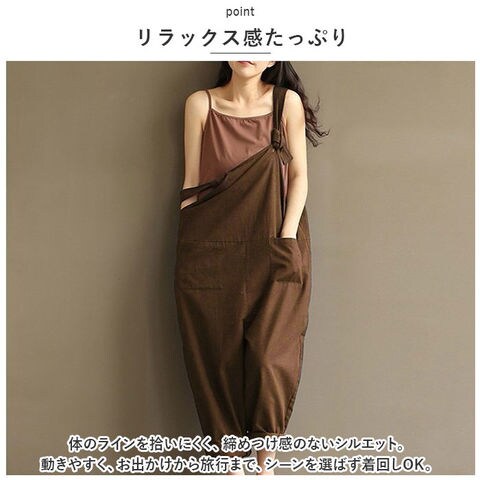 | 商品説明 | ゆるっとルーズなフォルムがかわいい♪大人女子にぴったりなサロペットが登場。【リラックス感たっぷり】体のラインを拾いにくく、締めつけ感のないシルエット。動きやすく、お出かけからレジャーや旅行まで、シーンを選ばず着回しOK。【柔らかな肌触り】チクチク感のない、柔らかなコットン素材を使用。薄手でサラッと軽やかな着心地。【カジュアルにキマる!】お手持ちのロンTなどと合わせるだけで、シンプルなカジュアルコーデが完成☆裾をロールアップしてもおしゃれ。【自分サイズに調節】肩紐の結び目を変えるだけで、長さ調節もラクラク。【便利なポケット】両サイドに、ハンカチなどを入れておけるポケットを配置。(※バックポケットはフェイクです。)【選べるカラーバリエーション】コーデに取り入れやすい、落ち着きのあるカラーをラインナップ。お好みに合わせてチョイスして♪ |