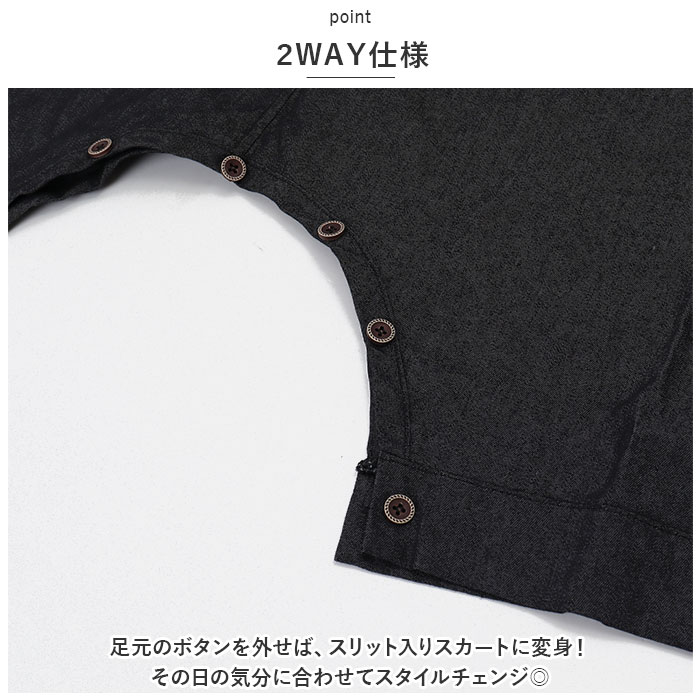 | 商品説明 | ゆるっとルーズなフォルムがかわいい♪ジャンパースカートにもなるサロペットが登場!【ゆるっとフォルム】体型を拾わない、ゆるっとルーズなフォルムがかわいい♪【2WAY仕様】足元のボタンを外せば、スリット入りスカートに変身!その日の気分に合わせてスタイルチェンジ◎【デニム風】デニム風素材とリラックス感のあるシルエットが、大人の抜け感を演出。【カジュアルコーデ】ロンTなどと合わせるだけで、シンプルなカジュアルコーデが完成♪【ストレスフリー】ゆったりとした着心地なので、サラッと着れて動きやすくストレスフリー。【ポケット付き】両サイドにポケットがあり、ハンカチなどのちょっとした小物を入れておけて便利。【大活躍】お出かけにもお家でのリラックスタイムにも大活躍のアイテム。 |