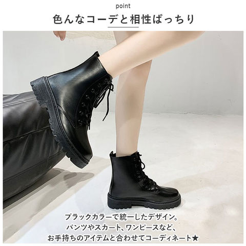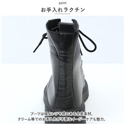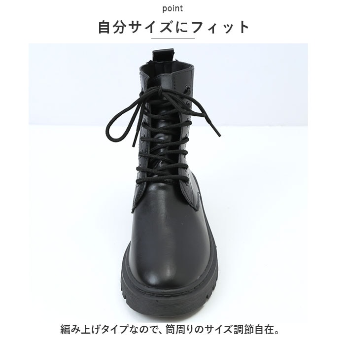 | 商品説明 | おしゃれを格上げ♪レースアップタイプのショートブーツが新登場。【安定感のあるブーツ】ソール前後のヒール差がほぼなく、足が疲れにくい!【自分サイズにフィット】編み上げタイプなので、筒周りのサイズ調節自在。【足入れがスムーズ】履き口にプルタブ付き。【防滑仕様のアウトソール】底面はしっかりと溝が刻まれたつくりで、滑りにくいのもポイント。【お手入れラクチン】ブーツは程よいツヤ感のある合皮素材。クリーム等でのお手入れが不要なイージーケアも魅力。【色んなコーデと相性ばっちり】ブラックカラーで統一したデザイン。パンツやスカート、ワンピースなど、お手持ちのアイテムと合わせてコーディネート★ |