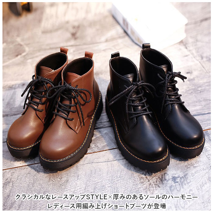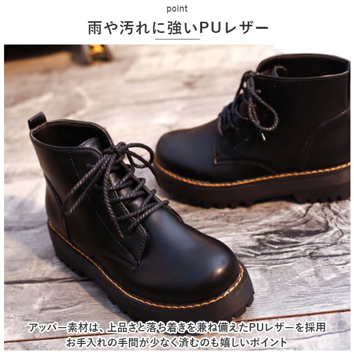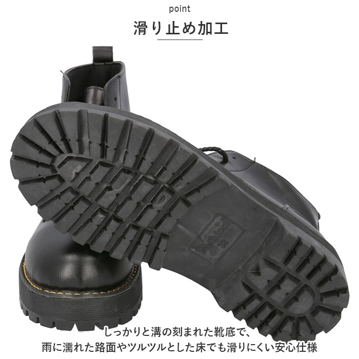 | 商品説明 | クラシカルなレースアップSTYLE×厚みのあるソールのハーモニー。レディース用編み上げショートブーツが登場。【長時間履いても疲れにくい】程よく厚みのある厚底ソールが、足に受ける衝撃を吸収。長時間履いても疲れにくい【雨や汚れに強いPUレザー】アッパー素材は、上品さと落ち着きを兼ね備えたPUレザーを採用。水滴や汚れに強く、お手入れの手間が少なく済むのも嬉しいポイント。【丸みのあるつま先】つま先は丸みを帯びたラウンドトゥ。ハードになりがちな編み上げブーツにガールズ感をプラス♪【滑り止め加工】しっかりと溝の刻まれた靴底で、雨に濡れた路面やツルツルとした床でも滑りにくい安心仕様。 |