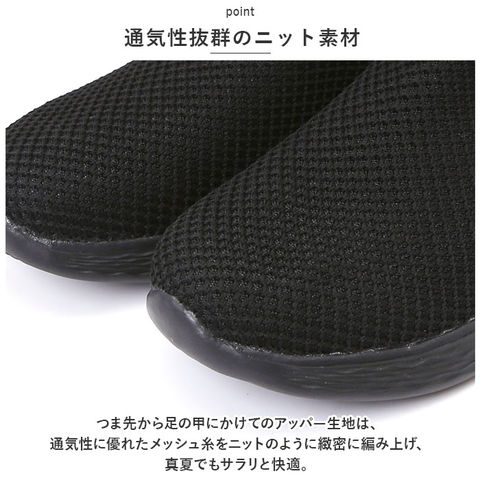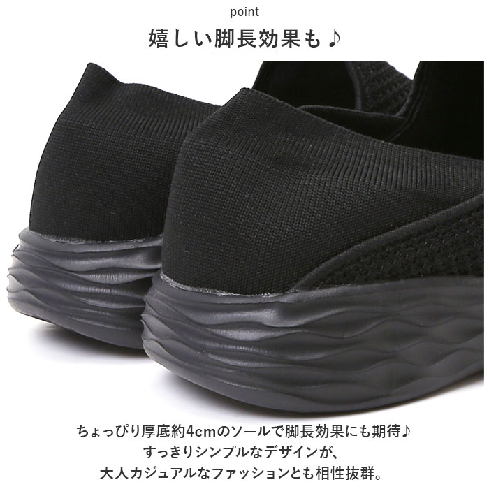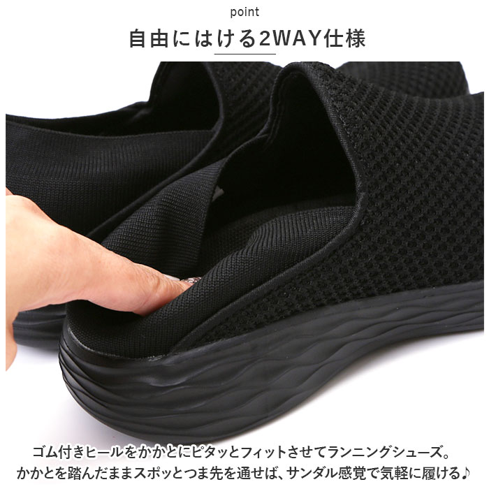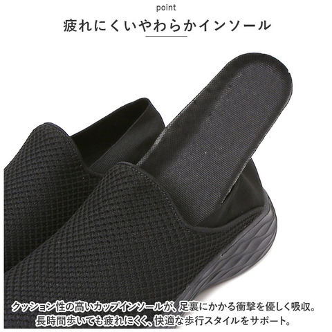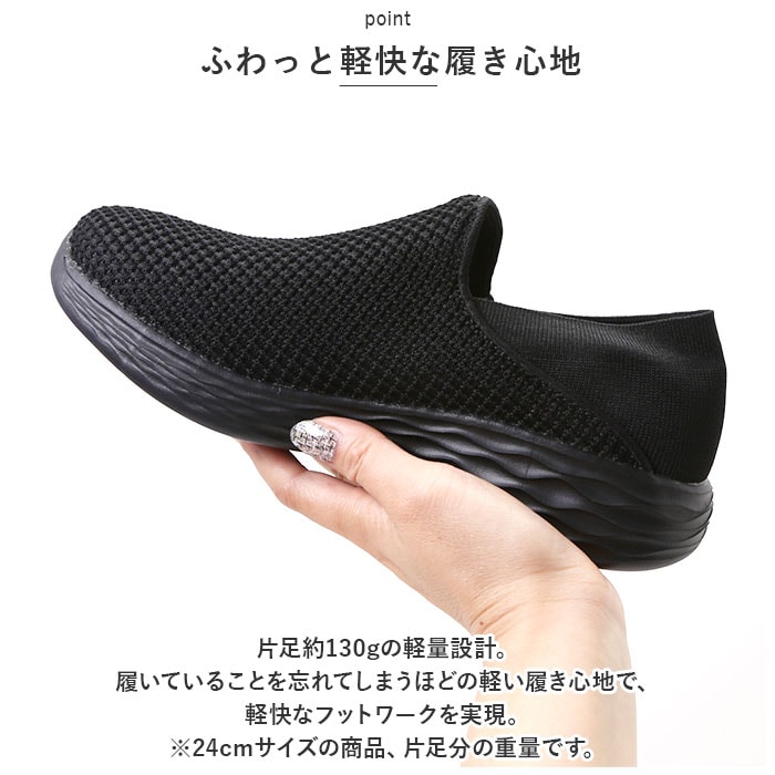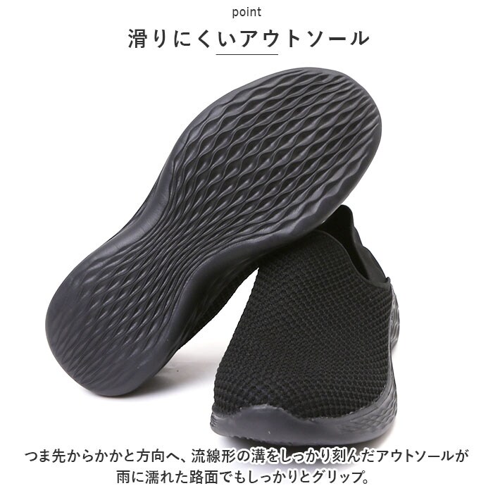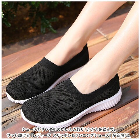 | 商品説明 | シューズとサンダルのいいとこ取り!かかとを踏んで、サッと履ける「レディース スリッポン&ランニングシューズ」が新登場。【通気性抜群のニット素材】つま先から足の甲にかけてのアッパー生地は、通気性に優れたメッシュ糸をニットのように緻密に編み上げ、真夏でもサラリと快適。【ふわっと軽快な履き心地】片足約130gの軽量設計。履いていることを忘れてしまうほどの軽い履き心地で、軽快なフットワークを実現。(※24cmサイズの商品、片足分の重量です。)【疲れにくいやわらかインソール】クッション性の高いカップインソールが、足裏にかかる衝撃を優しく吸収。長時間歩いても疲れにくく、快適な歩行スタイルをサポート。【自由にはける2WAY仕様】ゴム付きヒールをかかとにピタッとフィットさせてランニングシューズ。かかとを踏んだままスポッとつま先を通せば、サンダル感覚で気軽に履ける♪【滑りにくいアウトソール】つま先からかかと方向へ、流線形の溝をしっかり刻んだアウトソールが雨に濡れた路面でもしっかりとグリップ。【お手入れ簡単、いつでも清潔】カップインソールは取り外しができるので、手軽に水洗いができていつでも清潔。【嬉しい脚長効果も♪】ちょっぴり厚底約4cmのソールで脚長効果にも期待♪すっきりシンプルなデザインが、大人カジュアルなファッションとも相性抜群。【スポーツや普段使いに最適】ジムでのトレーニングや、ランニングなどのフィットネスにはもちろん、ちょっとそこまでのお出掛けやオフィス用のコンフォートシューズにもオススメ。 |