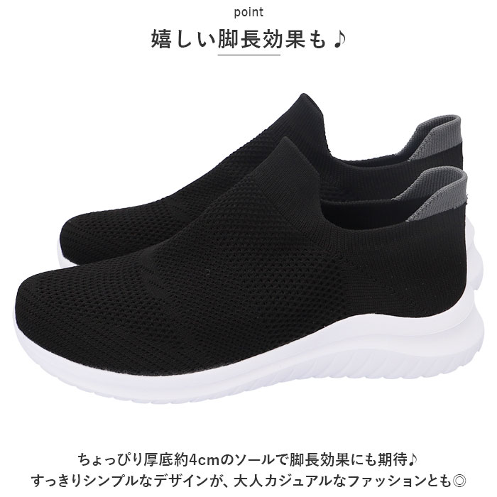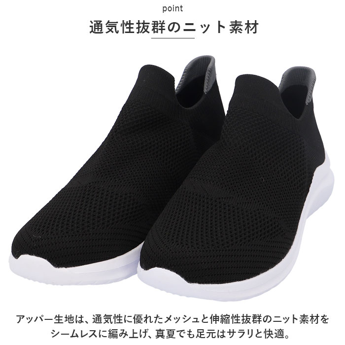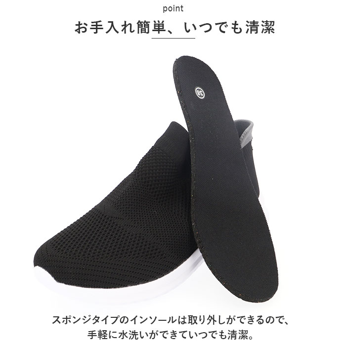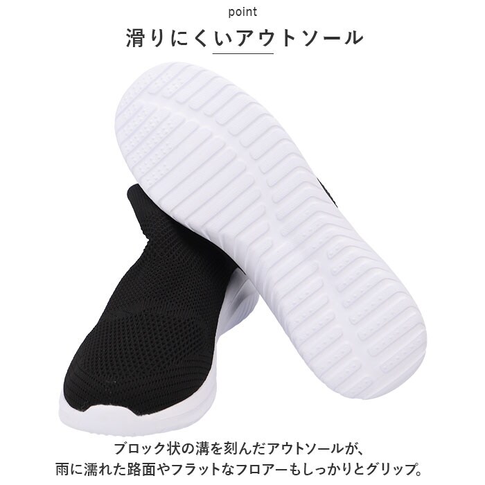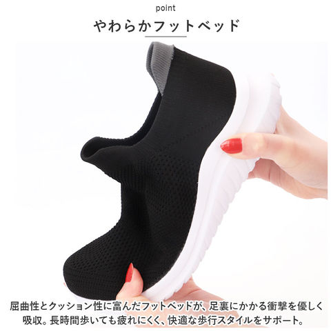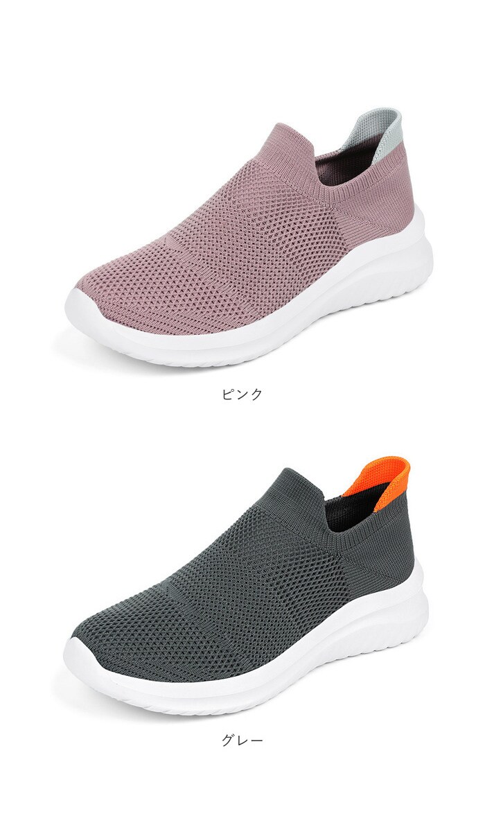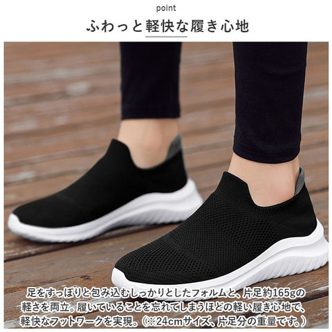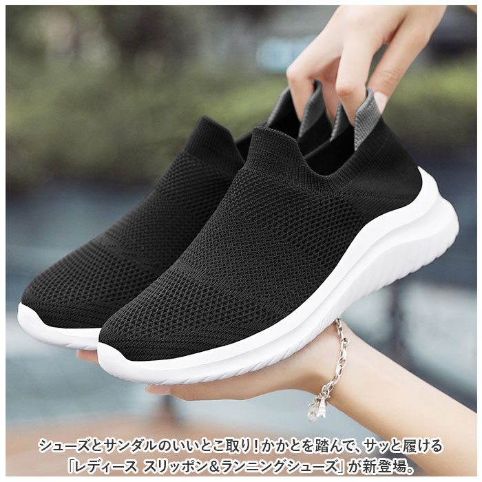 | 商品説明 | シューズとサンダルのいいとこ取り!かかとを踏んで、サッと履ける「レディース スリッポン&ランニングシューズ」が新登場。【通気性抜群のニット素材】アッパー生地は、通気性に優れたメッシュと伸縮性抜群のニット素材をシームレスに編み上げ、真夏でも足元はサラリと快適。【ふわっと軽快な履き心地】足をすっぽりと包み込むしっかりとしたフォルムと、片足約165gの軽さを両立。履いていることを忘れてしまうほどの軽い履き心地で、軽快なフットワークを実現。(※24cmサイズの商品、片足分の重量です。)【やわらかフットベッド】屈曲性とクッション性に富んだフットベッドが、足裏にかかる衝撃を優しく吸収。長時間歩いても疲れにくく、快適な歩行スタイルをサポート。【自由にはける2WAY仕様】ゴム付きヒールをかかとにピタッとフィットさせてランニングシューズ。かかとを踏んだままスポッとつま先を通せば、サンダル感覚で気軽に履ける♪【滑りにくいアウトソール】ブロック状の溝を刻んだアウトソールが、雨に濡れた路面やフラットなフロアーもしっかりとグリップ。【お手入れ簡単、いつでも清潔】スポンジタイプのインソールは取り外しができるので、手軽に水洗いができていつでも清潔。【嬉しい脚長効果も♪】ちょっぴり厚底約4cmのソールで脚長効果にも期待♪すっきりシンプルなデザインが、大人カジュアルなファッションとも相性抜群。【スポーツや普段使いに最適】ジムでのトレーニングや、ランニングなどのフィットネスにはもちろん、ちょっとそこまでのお出掛けやオフィス用のコンフォートシューズにもオススメ。 |