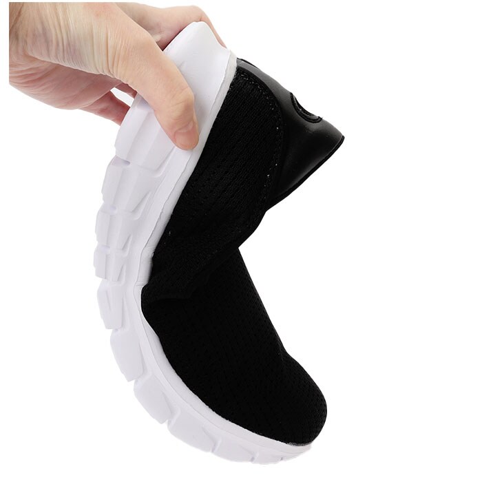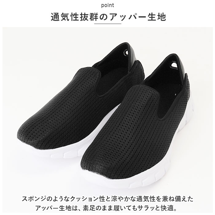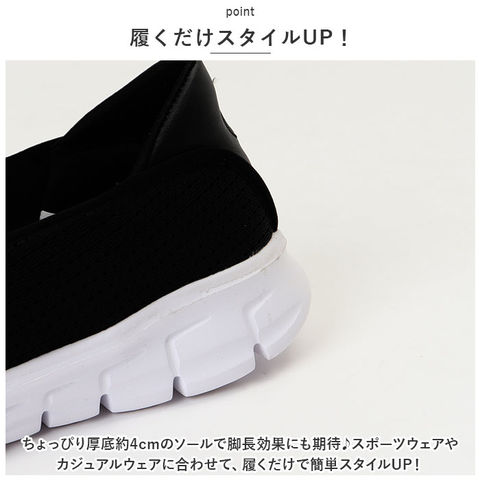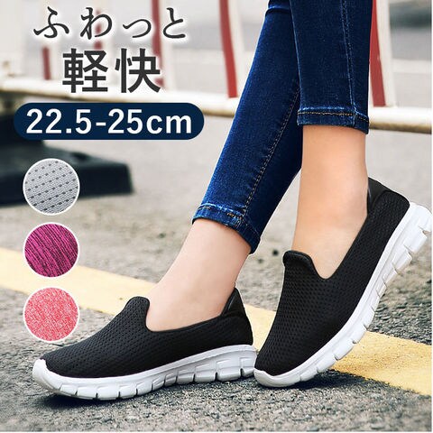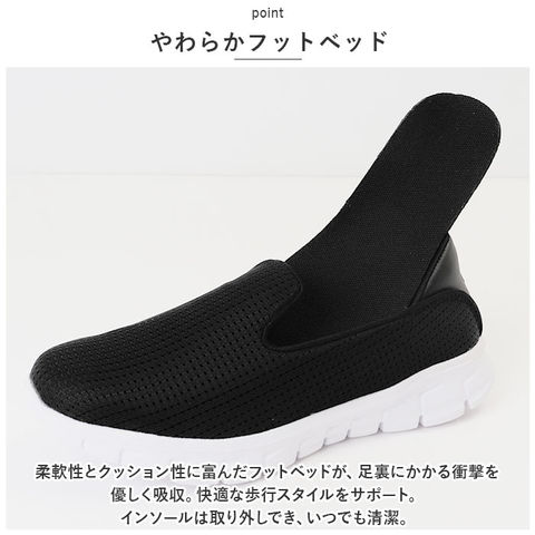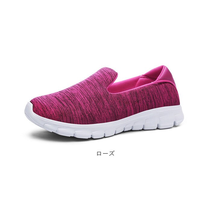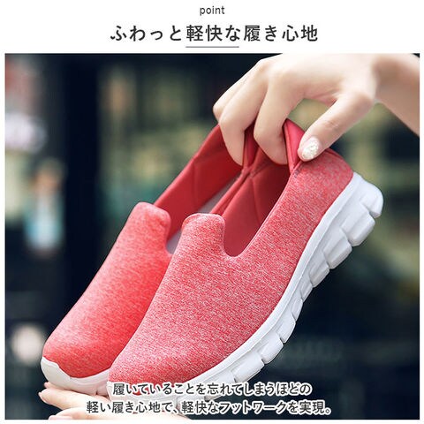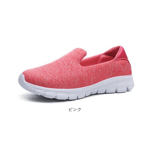 | 商品説明 | つま先がスッと入って気軽に履ける♪素足のままでも心地よい「レディース スリッポン&ランニングシューズ」が新登場。【通気性抜群のアッパー生地】スポンジのようなクッション性と涼やかな通気性を兼ね備えたアッパー生地は、素足のまま履いてもサラッと快適。【ふわっと軽快な履き心地】足をすっぽりと包み込む丸みのあるフォルムと、片足約125gの軽さを両立。履いていることを忘れてしまうほどの軽い履き心地で、軽快なフットワークを実現。(※23.5cmサイズの商品、片足分の重量です。)【やわらかフットベッド】柔軟性とクッション性に富んだフットベッドが、足裏にかかる衝撃を優しく吸収。長時間歩いても疲れにくく、快適な歩行スタイルをサポート。【滑りにくいアウトソール】ブロック状の凹凸を刻んだアウトソールが、雨に濡れた路面やフラットなフロアーもしっかりとグリップ。【お手入れ簡単、いつでも清潔】スポンジタイプのインソールは取り外しができるので、手軽に水洗いができていつでも清潔。【履くだけスタイルUP!】ちょっぴり厚底約4cmのソールで脚長効果にも期待♪スポーツウェアやカジュアルウェアに合わせて、履くだけで簡単スタイルUP!【コーデ自在のシンプルカラー】明るいメランジ調生地でパッと足元が華やぐ「ピンク&ローズ」。メッシュ生地でスポーティに仕上げた「ブラック&ライトグレー」など、大人カジュアルにフィットするシンプルなカラーバリエーション。【スポーツや普段使いに最適】ジムでのトレーニングや、ランニングなどのフィットネスにはもちろん、ちょっとそこまでのお出掛けやオフィス用のコンフォートシューズにもオススメ。 |