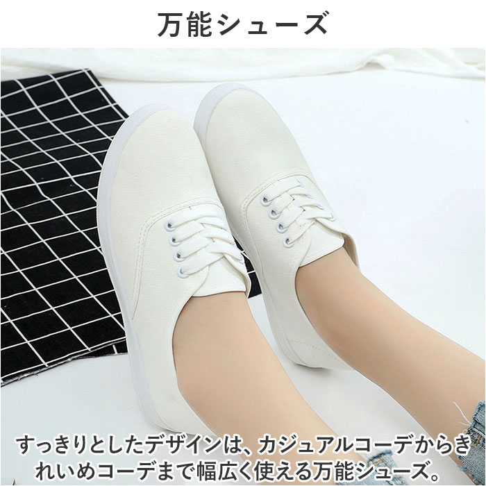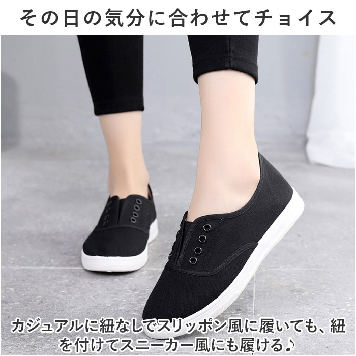 | 商品説明 | カジュアルコーデからきれいめコーデまで履きこなすレディースシューズの登場♪【その日の気分に合わせてチョイス】カジュアルに紐なしでスリッポン風に履いても、紐を付けてスニーカー風にも履ける♪【万能シューズ】すっきりとしたデザインは、カジュアルコーデからきれいめコーデまで幅広く使える万能シューズ。【脱ぎ履き楽チン♪】紐なしで手を使わずにサッと脱ぎ履き出来るからラクチン♪忙しいママさんや、出入りが多いお仕事用にも活躍。【フラットな履き心地】靴底ソールには、軽量で屈曲性のある合成ゴム底を使用。フラットで軽快な履き心地はデイリー使いにピッタリ。【カラーバリエーション】スタイルを選ばないアイボリーから、汚れを気にせず履けるダーク系、ファッションの挿し色になるカラーなど、カラーによって印象が異なるので、お気に入りを選んで♪色違いを持ってれば毎日のコーデが楽しくなる!! |