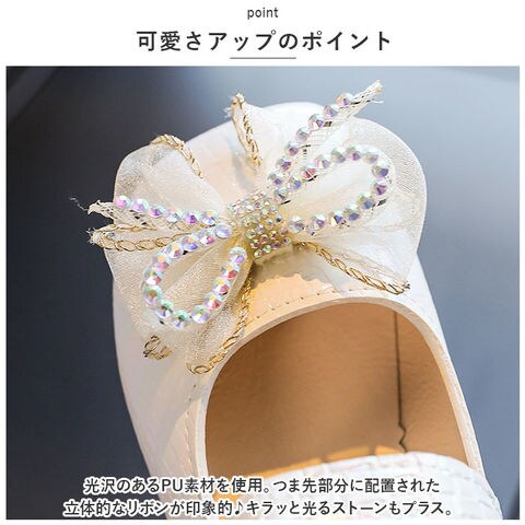 | 商品説明 | 足元もおしゃれに♪キュートなフォーマルシューズが登場。【可愛さアップのポイント】光沢のあるPU素材を使用。つま先部分に配置された立体的なリボンが印象的♪キラッと光るストーンもプラス。【面ファスナーで着脱カンタン】ストラップは面ファスナー式なので、お子さま1人でも脱ぎ履きラクラク。【歩きやすさが向上】屈曲性があり、つま先にかけてやや上を向いた形状。つまづきにくく、蹴り上げやすい!【安定感のあるソール】前後の差を抑えたほぼフラットなソール。滑りにくい素材で、濡れた路面でも安心。【フォーマルシーンで】発表会やパーティーなどのお呼ばれシーンで大活躍! |