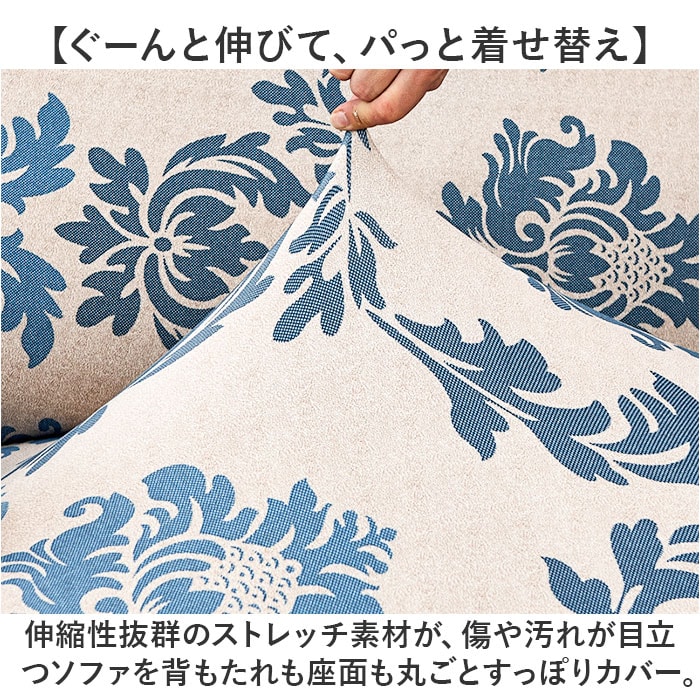 | 商品説明 | 【お使いのソファにサッと被せるだけ】個性的なテキスタイルで、手軽にお部屋を模様替え!「3人掛け用・ソファーカバー」が新登場!【ぐーんと伸びて、パっと着せ替え】伸縮性抜群のストレッチ素材が、傷や汚れが目立つソファを背もたれも座面も丸ごとすっぽりカバー。【ピタッとフィット、仕上がりキレイ】ポリウレタン配合の繊維がぐーん伸びる生地のヒミツ。薄手でシワが寄りにくいのも嬉しいポイント。【誰でも簡単セッティング】伸縮ゴムの入ったカバー裾をソファ下部まで被せ、カバー裏側の3組の固定紐を結ぶだけの簡単装着!【スポンジ棒でズレ防止!】付属のスポンジスティックを背もたれと座面の境目に埋め込むことで、カバーのズレを防止。キチンと感のある仕上がりが好印象。※スポンジ棒はサービスパーツとして付属しています。まれに付属していない場合がございますが、ご使用には問題ございません。【オールシーズン快適な素材感】サラッと滑らかな気持ちのよい肌触りで、季節を問わずにオールシーズンコーディネート可能。【クッションもお揃いコーデ】ソファーカバーと同じ柄のクッションカバーが付属。背中にちょこんと置ける小ぶりな45×45cmサイズ。【ご家庭でカンタンお洗濯♪】手軽にお手入れができる簡単ウォッシャブル仕様。小さなお子様やペットがいるご家庭でも安心。【選べるカラーで、気持ち華やぐ】センスの良さが際立つバラエティ豊かな絵柄も魅力♪季節ごとの模様替えで気持ちリフレッシュ!【セット内容】ソファーカバー(3人掛け用)×1枚クッションカバー×1枚スポンジスティック(サービスパーツ)×10本 |