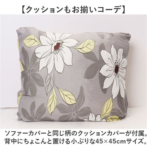 | サイズ | 【ソファーカバー】 [適応サイズ]3人掛け肘付き用:約190cm~約230cm 【クッションカバー】 [縦]約45cm/[横]約45cm ※サイズはメーカー公表サイズです。実際の商品とは多少の誤差が生じる場合がございます。あらかじめご了承ください。 |