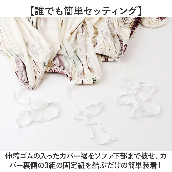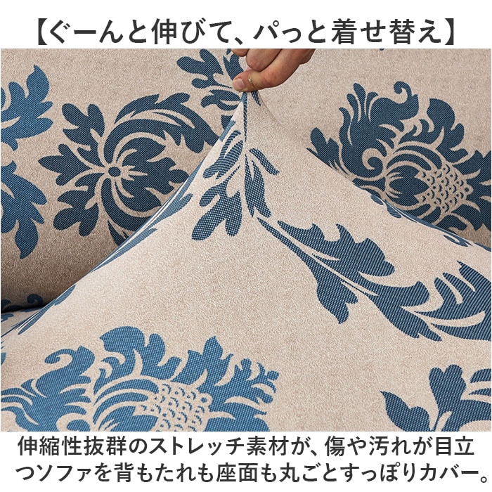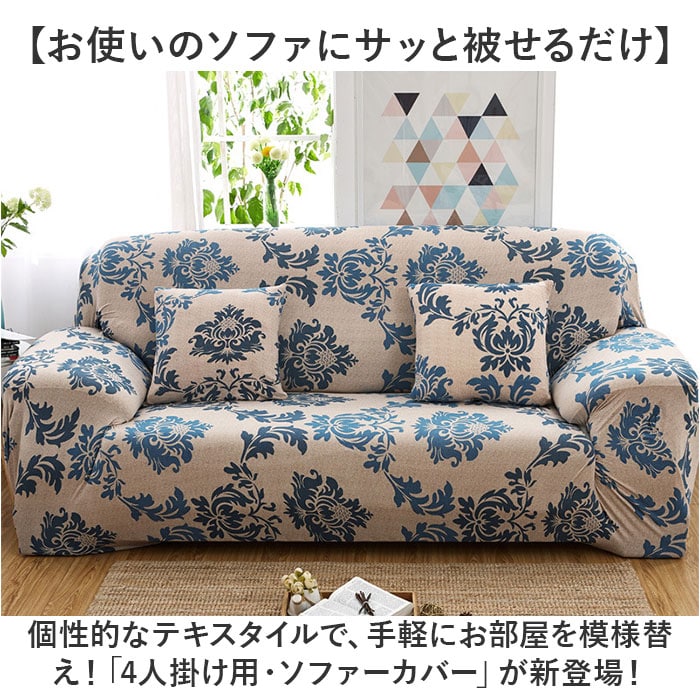 | 商品説明 | 【お使いのソファにサッと被せるだけ】個性的なテキスタイルで、手軽にお部屋を模様替え!「4人掛け用・ソファーカバー」が新登場!【ぐーんと伸びて、パっと着せ替え】伸縮性抜群のストレッチ素材が、傷や汚れが目立つソファを背もたれも座面も丸ごとすっぽりカバー。【ピタッとフィット、仕上がりキレイ】ポリウレタン配合の繊維がぐーん伸びる生地のヒミツ。薄手でシワが寄りにくいのも嬉しいポイント。【誰でも簡単セッティング】伸縮ゴムの入ったカバー裾をソファ下部まで被せ、カバー裏側の3組の固定紐を結ぶだけの簡単装着!【スポンジ棒でズレ防止!】付属のスポンジスティックを背もたれと座面の境目に埋め込むことで、カバーのズレを防止。キチンと感のある仕上がりが好印象。※スポンジ棒はサービスパーツとして付属しています。まれに付属していない場合がございますが、ご使用には問題ございません。【オールシーズン快適な素材感】サラッと滑らかな気持ちのよい肌触りで、季節を問わずにオールシーズンコーディネート可能。【クッションもお揃いコーデ】ソファーカバーと同じ柄のクッションカバーが付属。背中にちょこんと置ける小ぶりな45×45cmサイズ。【ご家庭でカンタンお洗濯♪】手軽にお手入れができる簡単ウォッシャブル仕様。小さなお子様やペットがいるご家庭でも安心。【選べるカラーで、気持ち華やぐ】センスの良さが際立つバラエティ豊かな絵柄も魅力♪季節ごとの模様替えで気持ちリフレッシュ!【セット内容】ソファーカバー(4人掛け用)×1枚クッションカバー×1枚スポンジスティック(サービスパーツ)×12本 |