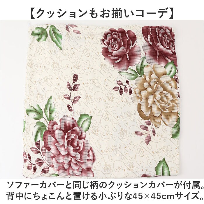 | サイズ | 【ソファーカバー】 [適応サイズ]四人掛け肘付き用:約235cm~約300cm 【クッションカバー】 [縦]約45cm/[横]約45cm ※サイズはメーカー公表サイズです。実際の商品とは多少の誤差が生じる場合がございます。あらかじめご了承ください。 |