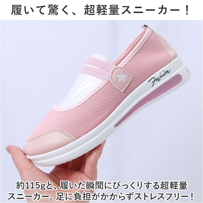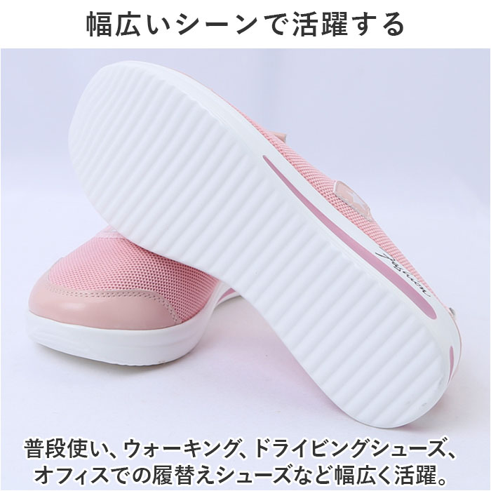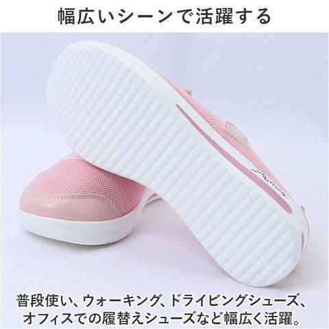 | 商品説明 | 驚きの軽さとスタイルアップも叶う♪スリッポンスタイルのレディース スニーカーの登場!【履いて驚く、超軽量スニーカー!】約115gと、履いた瞬間にびっくりする超軽量スニーカー。足に負担がかからずストレスフリー!【サッと履けるスリッポンタイプ】広めの履き口で、急いでいるときでもサッとつま先が通せるスリッポンタイプ。甲部分のアクセントのゴムで脱げる心配ナシ。【厚底ソールで、スタイルUP】約3cmのちょっぴり厚底ソールで脚長効果にも期待!すっきりシンプルなデザインが、大人カジュアルなファッションとも相性抜群。【通気性抜群でムレしらず】コットン生地仕様のアッパーはムレにくい。汗をかくシーンでも靴内の快適さをキープ!【衝撃を吸収するクッション】厚めのソールとインソールはクッション性があり、地面からの衝撃をしっかり吸収してくれる。【幅広いシーンで活躍する】普段使い、ウォーキング、ドライビングシューズ、オフィスでの履替えシューズなど幅広く活躍。 |
