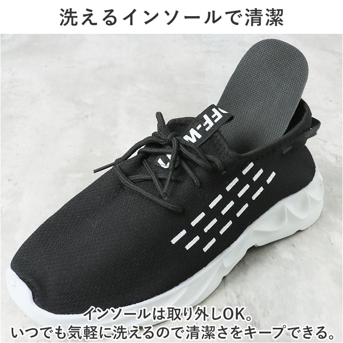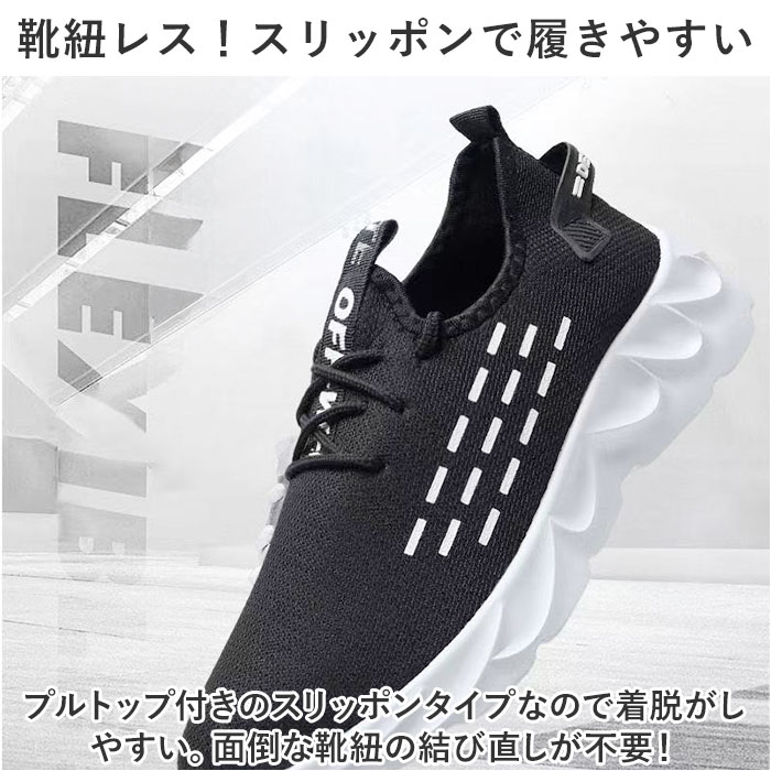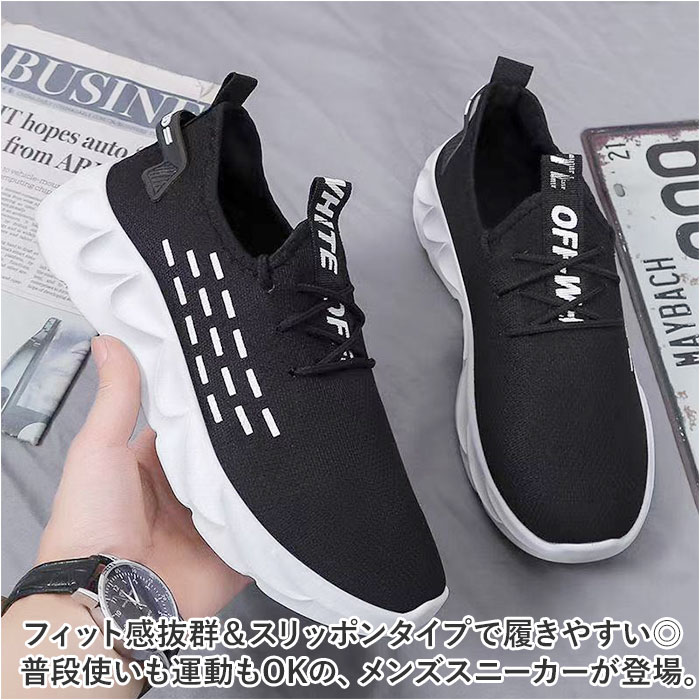 | 商品説明 | フィット感抜群&スリッポンタイプで履きやすい◎普段使いも運動もOKの、メンズスニーカーが登場。【抜群のフィット感で快適な履き心地】伸縮性のある柔らかなアッパー部分が、足のカタチにぴったりフィット!履き心地が超快適。【靴紐レス!スリッポンで履きやすい】プルトップ付きのスリッポンタイプなので着脱がしやすい。面倒な靴紐の結び直しが不要!【スポーツシーンにも最適】ムレにくいニットタイプのアッパーなので、汗をかくスポーツシーンにもオススメ!【屈曲性◎のソールで動きやすい】屈曲性に優れたソールが足の動きをサポート。アクティブな動きにも対応しラクチン◎【滑りにくいので雨の日も安心】ソール部分は凸凹加工済み。雨の日の地面もしっかりグリップする、滑りにくい安心仕様。【シンプルデザイン&カラーが魅力】幅広いシーンにマッチするシンプルデザインと定番カラー!タウンユースにも最適。【洗えるインソールで清潔】インソールは取り外しOK。いつでも気軽に洗えるので清潔さをキープできる。 |