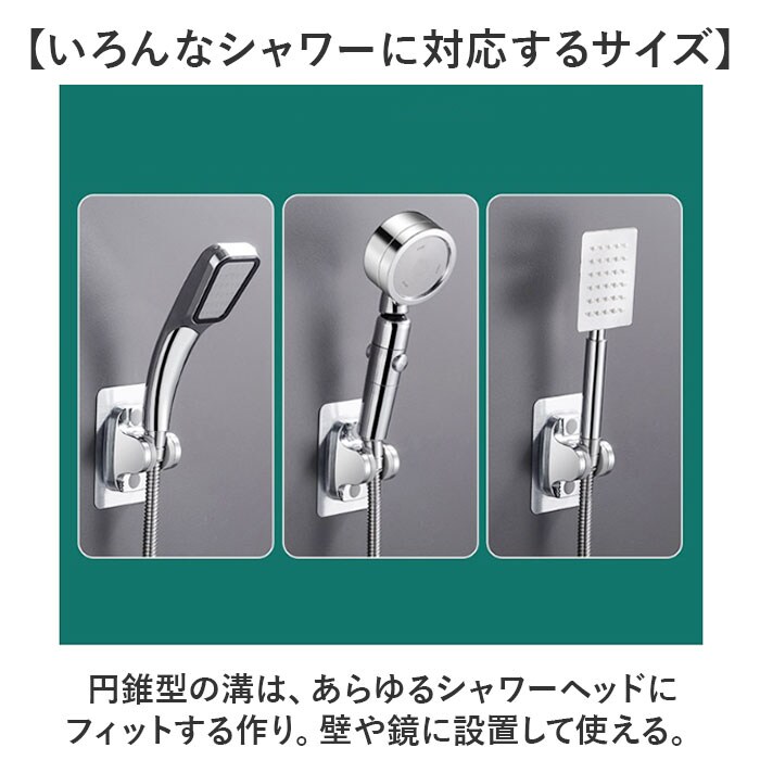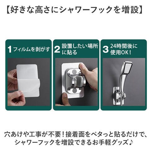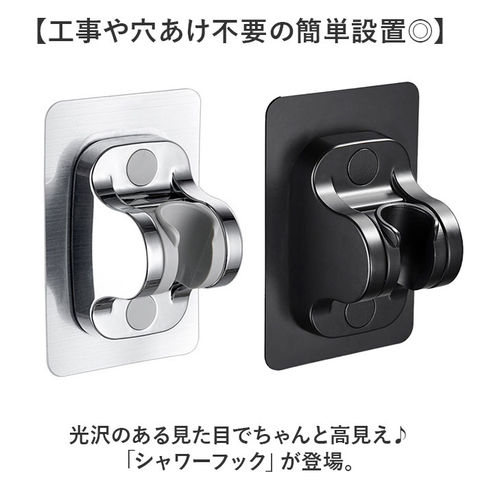 | 商品説明 | 【工事や穴あけ不要の簡単設置◎】光沢のある見た目でちゃんと高見え♪「シャワーフック」が登場。【好きな高さにシャワーフックを増設】穴あけや工事が不要!接着面をペタっと貼るだけで、シャワーフックを増設できるお手軽グッズ♪【いろんなシャワーに対応するサイズ】円錐型の溝は、あらゆるシャワーヘッドにフィットする作り。壁や鏡に設置して使える。【シンプルでスタイリッシュ】強度に優れ、光沢と高級感のあるABS素材を使用。バスルームをスタイリッシュに演出。【強力なホールド感で安定】強力な接着剤で固定できるので、ブレなく安定!ドライヤーで温めれば、取り外しも可能。【選べるシンプルカラー】ベーシックな2色をご用意。どんなバスルームにもマッチするカラーで使いやすい。 |