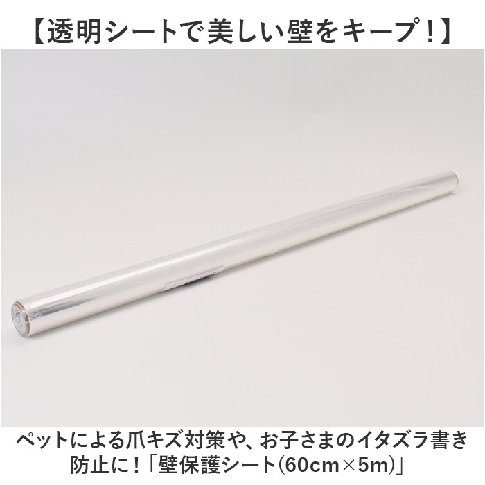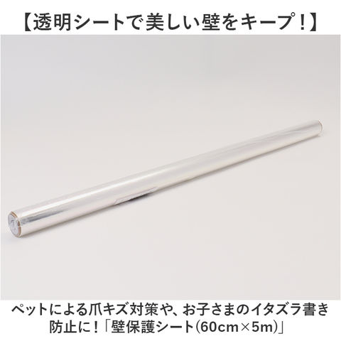 | 商品説明 | 【透明シートで美しい壁をキープ!】ペットによる爪キズ対策や、お子さまのイタズラ書き防止に!「壁保護シート(60cm×5m)」【ボロボロになる前にメンテナンス】ワンちゃんや猫ちゃんが壁紙でカリカリ爪とぎ・・・。ペットを叱る前に透明シートでしっかり保護!【つるつるだから、キズが付かない】お部屋の壁の下部にペタっと貼るだけ!表面のつるつるとした質感で引っかき傷や汚れを防止。【貼ってはがせてのり残りしない】ペタっと貼って、サッとはがせる静電吸着タイプ。接着剤なしで壁を傷めないから賃貸住宅でもOK!【繰り返し使えて、とってもECO】貼り付け場所の面積が大きいほど静電吸着力が大きくなり、何度も繰り返し貼って使えるエコ仕様。【防水防汚仕様でお手入れ簡単】シートに水が染みこまない表面防水仕様。マジックのイタズラ書きもサッとひと拭きで簡単キレイ!【大きさもカタチも自由にカット】薄手のポリプロピレンシートなので、貼りたい壁の広さに合わせてカッターで自由にカット可能。【目立たないクリアタイプ】壁紙や壁面の素材を生かして目立たない透明タイプ。インテリアの雰囲気を損ねたくない方に最適。【選べる2種類の素材感】ツヤツヤの輝きで清潔感を演出する「つやあり」と、しっとり落ち着きのある「つや消し」の2タイプ。【広範囲に貼れる幅広シート】壁面の広い範囲や、家具やドアの表面にも自由にたっぷり貼れる、高さ60cm×5mの大きめサイズ。【小型犬、子猫ちゃんに最適サイズ】高さ60cmまでをしっかりカバーするので、中型のワンちゃんや猫ちゃんが伸びあがっても大丈夫!※大型のワンちゃんが後ろ脚で立ち上がった場合は、前脚や爪が壁に届いてしまう可能性がございます。【さまざまなシーンに活用可能】ベビーベッド回りや子ども部屋、システムキッチン周りの油汚れ防止用シートとしても大活躍! |