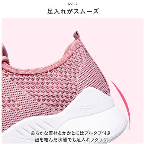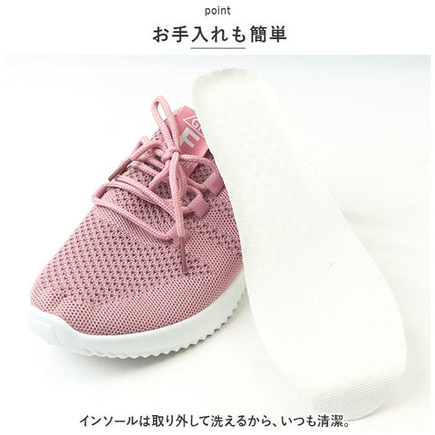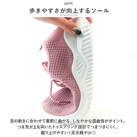 | 商品説明 | うれしい軽量設計!アクティブに動けてデイリー使いにぴったりな、レディーススニーカーが新登場。【ストレスフリーな履き心地】足に負担がかかりにくい、軽量なつくり。長時間歩いたり移動の多い日も疲れを軽減◎【通気性ばっちり】アッパー部分は通気性に優れたメッシュ仕様。涼しげなデザインで、汗をかいてもムレにくいのがポイント。【足入れがスムーズ】柔らかな素材&かかとにはプルタブ付き。紐を結んだ状態でも足入れラクラク。【歩きやすさが向上するソール】足の動きに合わせて柔軟に曲がる、しなやかな屈曲性がポイント。つま先が上を向いたトゥスプリング設計でつまづきにくく、蹴り上げやすい!足元軽やか◎【お手入れも簡単】インソールは取り外して洗えるから、いつも清潔。【衝撃を抑えて滑りにくい!】凹凸のあるアウトソールで、滑りやすい路面でも安心。程よい厚みがあり、足にかかる衝撃を吸収。【色々なシーンで活躍】お出かけや通勤・通学、ちょっとした運動にも最適。気軽に履きやすいデザインと機能性が魅力。【選べるカラー】ベーシックカラーや、コーデのアクセントになるカラーをラインナップ。プルタブのロゴがワンポイントになり、カジュアルコーデに素敵にマッチ☆ |