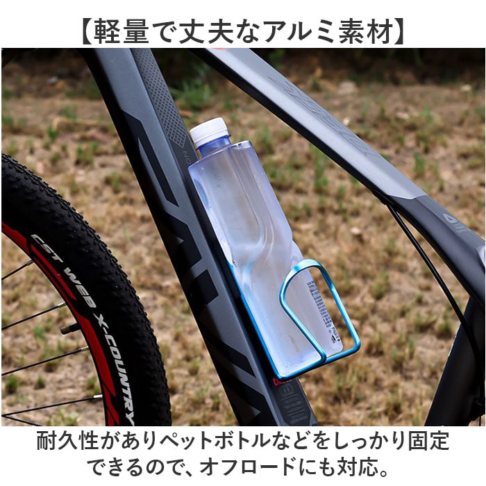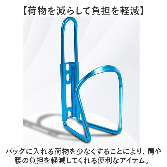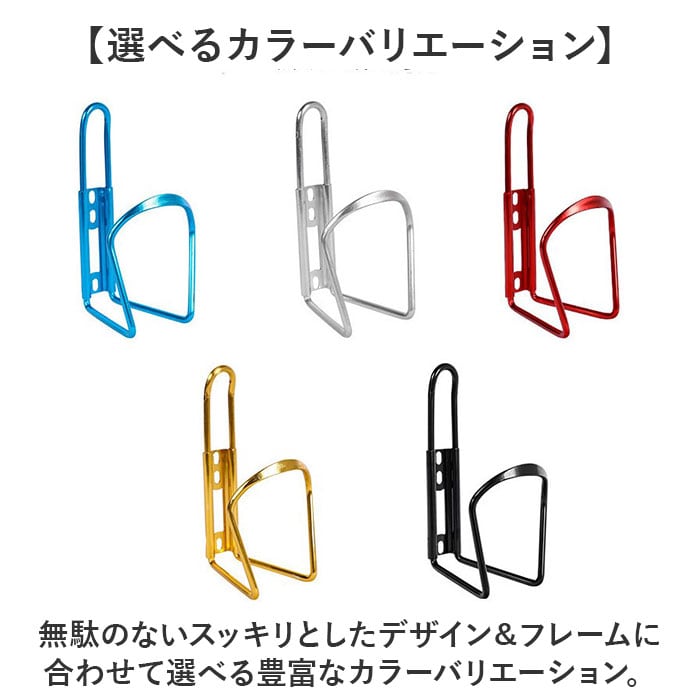 | 商品説明 | 【ボトルをしっかりホールド】サイクリングが快適になる「アルミボトルケージ」が登場。【荷物を減らして負担を軽減】バッグに入れる荷物を少なくすることにより、肩や腰の負担を軽減してくれる便利なアイテム。【取り付け簡単】お手持ちのネジでダウンチューブやシートチューブに固定すれば、手軽に水分補給が可能。【軽量で丈夫なアルミ素材】耐久性がありペットボトルなどをしっかり固定できるので、オフロードにも対応。【車種を選ばず取り付け可能】ロードバイクやマウンテンバイクなど車種を選ばず取り付けできるのもポイント。【選べるカラーバリエーション】無駄のないスッキリとしたデザイン&フレームに合わせて選べる豊富なカラーバリエーション。 |