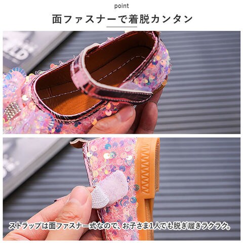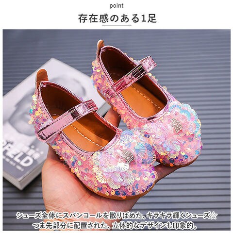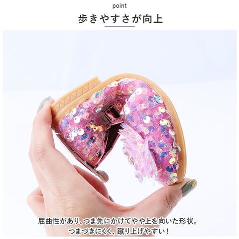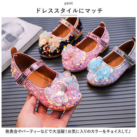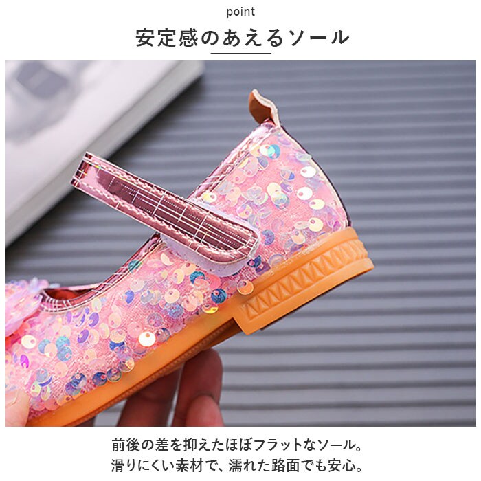 | 商品説明 | 足元もおしゃれに♪キュートなフォーマルシューズが登場。【存在感のある1足】シューズ全体にスパンコールを散りばめた、キラキラ輝くシューズ☆つま先部分に配置された、立体的なデザインも印象的。【面ファスナーで着脱カンタン】ストラップは面ファスナー式なので、お子さま1人でも脱ぎ履きラクラク。【歩きやすさが向上】屈曲性があり、つま先にかけてやや上を向いた形状。つまづきにくく、蹴り上げやすい!【安定感のあえるソール】前後の差を抑えたほぼフラットなソール。滑りにくい素材で、濡れた路面でも安心。【ドレススタイルにマッチ】発表会やパーティーなどで大活躍!お気に入りのカラーをチョイスして♪ |