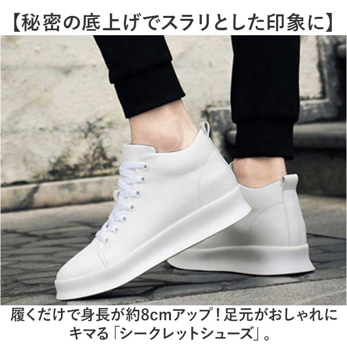 シークレットシューズ 8cmアップ【ホワイト】【42(27.5cm)】