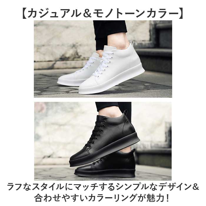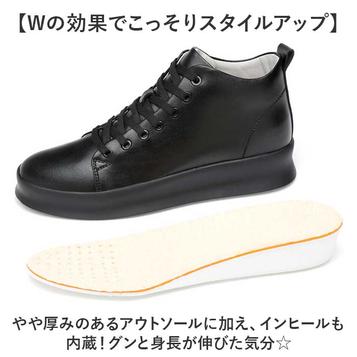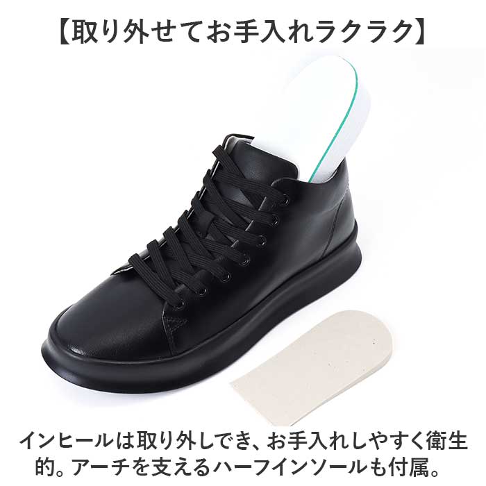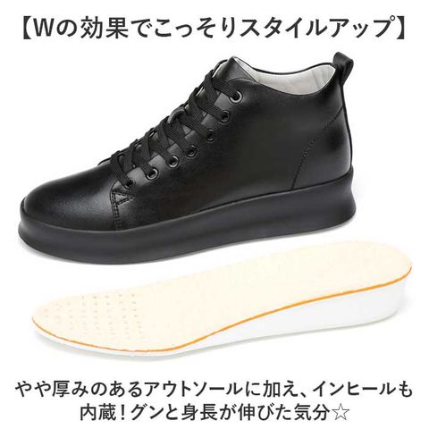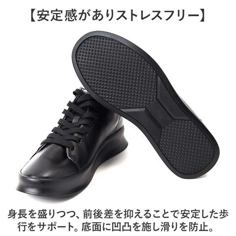 | 商品説明 | 【秘密の底上げでスラリとした印象に】履くだけで身長が約8cmアップ!足元がおしゃれにキマる「シークレットシューズ」。【Wの効果でこっそりスタイルアップ】やや厚みのあるアウトソールに加え、インヒールも内蔵!グンと身長が伸びた気分☆【フィット感を高めるシューレース】紐の結び具合で多少のサイズ調節が可能。シューズと足が一体化するような着用感。(※)後ろにプルタブ付きです。【取り外せてお手入れラクラク】インヒールは取り外しでき、お手入れしやすく衛生的。アーチを支えるハーフインソールも付属。【屈曲性があり、歩きやすさが向上】つま先部分が足の動きに合わせて柔軟に曲がるやや上向き形状。蹴り上げやすくつまずきにくい!【安定感がありストレスフリー】身長を盛りつつ、前後差を抑えることで安定した歩行をサポート。底面に凹凸を施し滑りを防止。【カジュアル&モノトーンカラー】ラフなスタイルにマッチするシンプルなデザイン&合わせやすいカラーリングが魅力! |