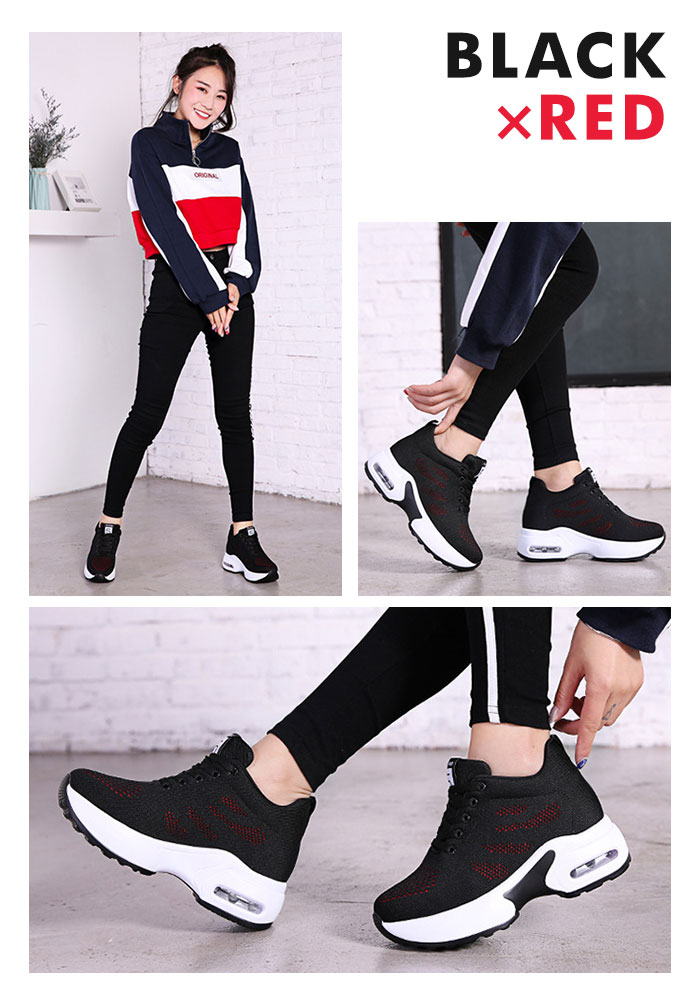 インヒールスニーカー pmyshoes13【ブラック×レッド】【38(24cm)】