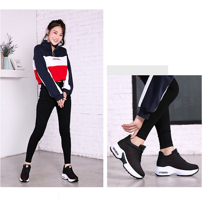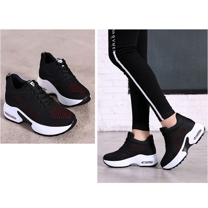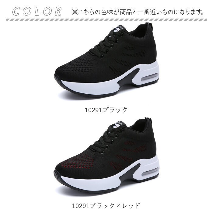 インヒールスニーカー【10291ブラック×レッド】【38(24cm)】