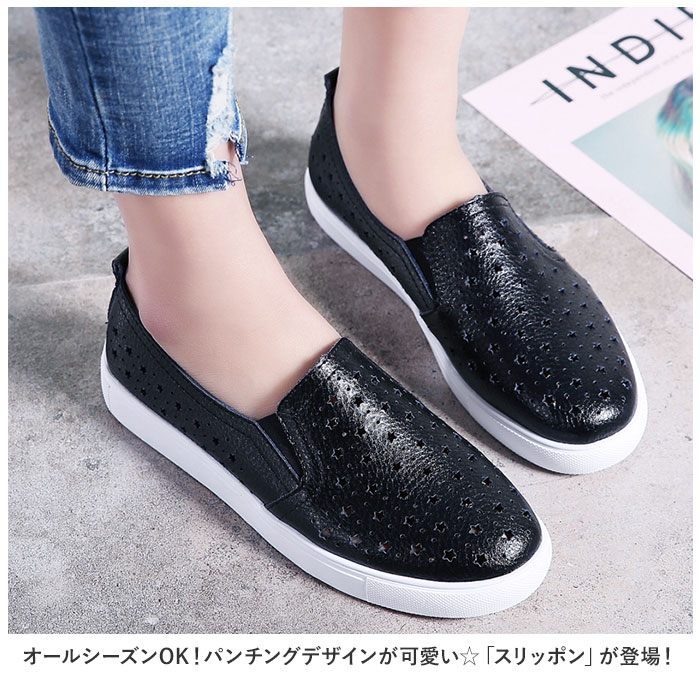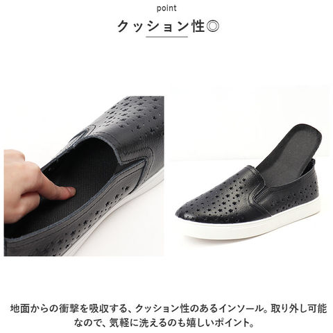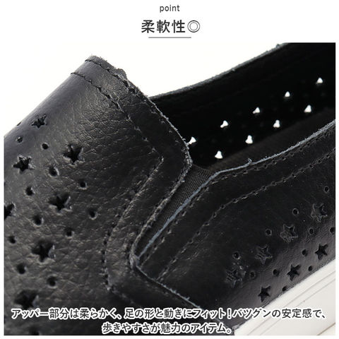 | 商品説明 | オールシーズンOK!パンチングデザインが可愛い☆「スリッポン」が登場!【スリッポンタイプ】両サイドにゴムを使用した履き口で、スムーズな着脱ができる。紐レスのスリッポンタイプなので、結び直す手間いらず。【星のパンチングデザイン】星をちりばめたような、パンチングデザインが可愛い☆さりけなく細やかなので、子供っぽくならず大人のカジュアルスタイルにぴったり!【柔軟性◎】アッパー部分は柔らかく、足の形と動きにフィット!バツグンの安定感で、歩きやすさが魅力のアイテム。【クッション性◎】地面からの衝撃を吸収する、クッション性のあるインソール。取り外し可能なので、気軽に洗えるのも嬉しいポイント。【合わせやすい◎】配色を抑えたシンプルなカラー仕様。スカートにもパンツにも合うので、いつものコーデに取り入れやすい。 |