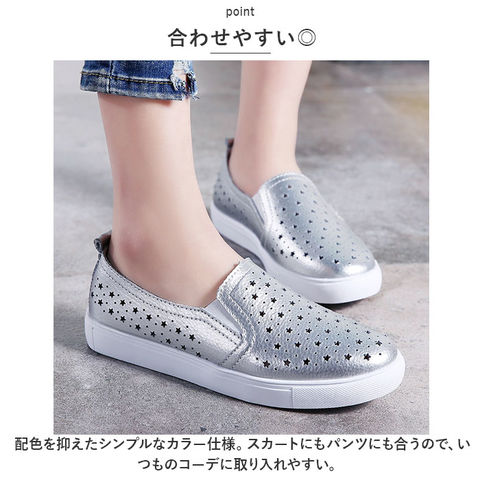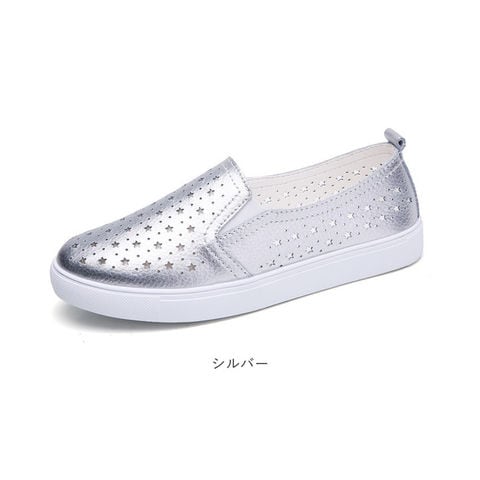 スリッポン レディース pmyshoes2023【シルバー】【36(23cm)】
