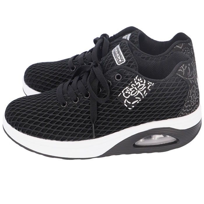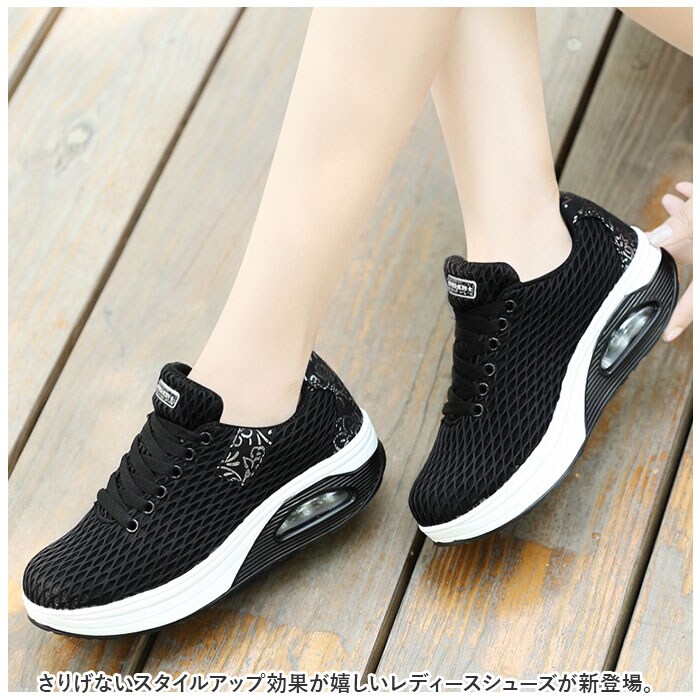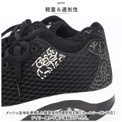 | 商品説明 | さりげないスタイルアップ効果が嬉しいレディースシューズが新登場。【厚底仕様】約5cmの厚底でさりげない脚長効果!シューズを履くだけでお手軽にスタイルアップできるのが嬉しいポイント。歩行時の衝撃を優しく吸収するクッション素材を内蔵。長時間履いても疲れにくい◎【軽量&通気性】メッシュ生地を使用した軽量素材。通気性も良くオールシーズン対応!デイリー使いや軽い運動にぴったり。【シックなデザイン】サイドやかかと部に花柄をあしらったデザイン。シックな印象で大人女子にもおススメ! |
