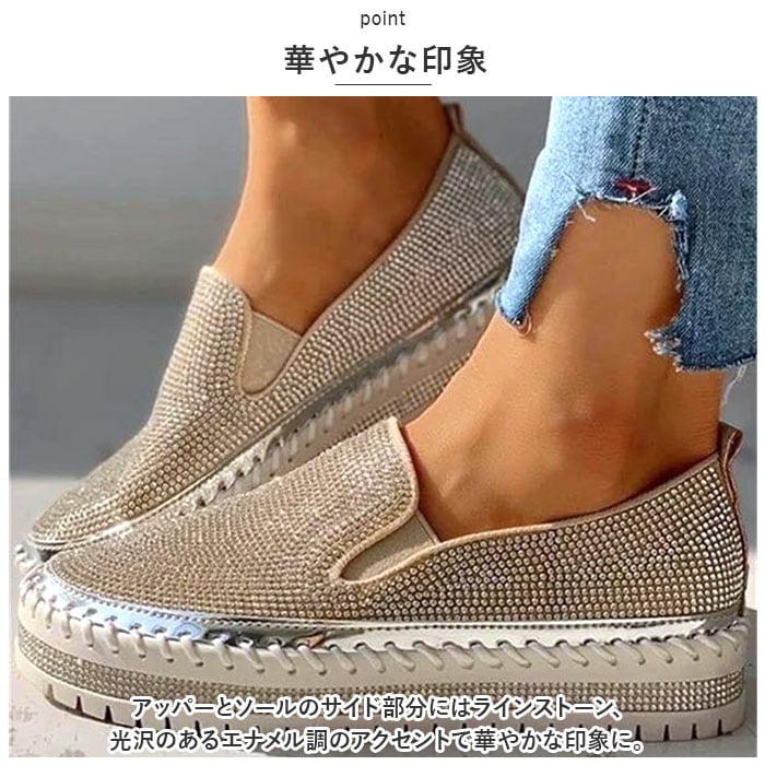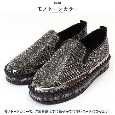 | 商品説明 | ラインストーン×エナメル調のアクセントで華やかなローファーが登場!【華やかな印象】アッパーとソールのサイド部分にはラインストーン、光沢のあるエナメル調のアクセントで華やかな印象に。【スリッポンタイプ】スリッポンタイプなので手を使わずに、サッと足を滑り込ませるだけで簡単に脱ぎ履きしやすい!【スタイルアップ】厚底のフラットソールは履くだけで自然とスタイルアップ!【モノトーンカラー】モノトーンカラーで、洋服を選ばずに華やかで可愛いコーデにぴったり!【フラットソール】フラットソールなので、疲れにくく安定性があり、タウンユース等ちょっとしたお出かけにも大活躍! |