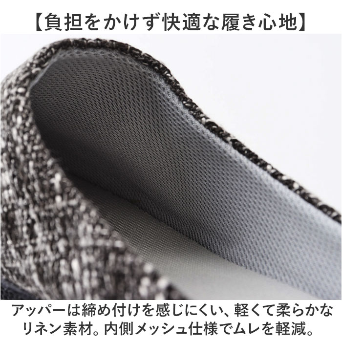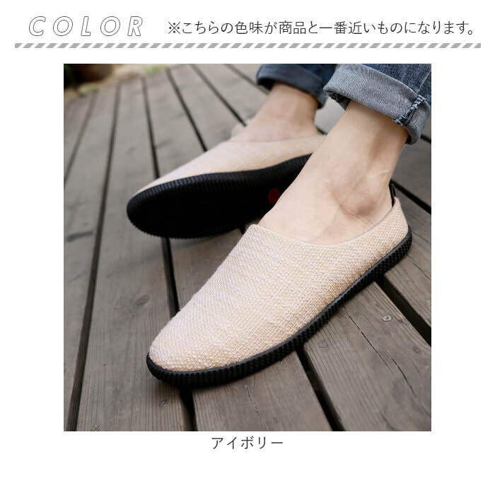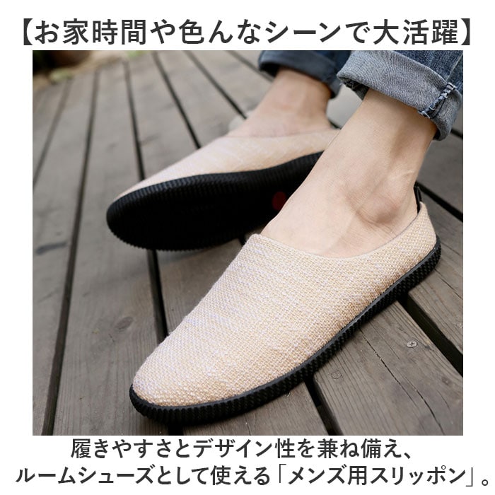 | 商品説明 | 【お家時間や色んなシーンで大活躍】履きやすさとデザイン性を兼ね備え、ルームシューズとして使える「メンズ用スリッポン」。【脱ぎ履き簡単!スムーズに足入れ】紐のないスリッポンタイプ。かかと部分が低めに作られており、滑らせるように履けるつくり。【負担をかけず快適な履き心地】アッパーは締め付けを感じにくい、軽くて柔らかなリネン素材。内側メッシュ仕様でムレを軽減。【取り外せて衛生的なインソール】インソールは、サッと外してお手入れ可能。いつも清潔をキープできる◎【屈曲性があり歩きやすさが向上】足の動きに合わせて柔軟に曲がる形状。蹴り上げやすくつまずきにくい!【滑りにくく安定感のあるソール】室内でも滑りを防いで、安定感をキープするフラットなゴムソール。安全面にも配慮。【シンプルでおしゃれなデザイン】ナチュラルな風合いで、空間に馴染む仕上がり。来客用やベランダ用、ちょっとした外出にも。 |