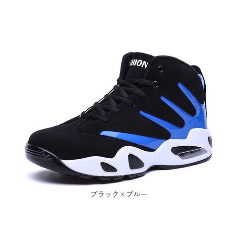 メンズ ハイカット エアー スニーカー pmyshoes8812【ブラック×ブルー】【41(25.5cm)】