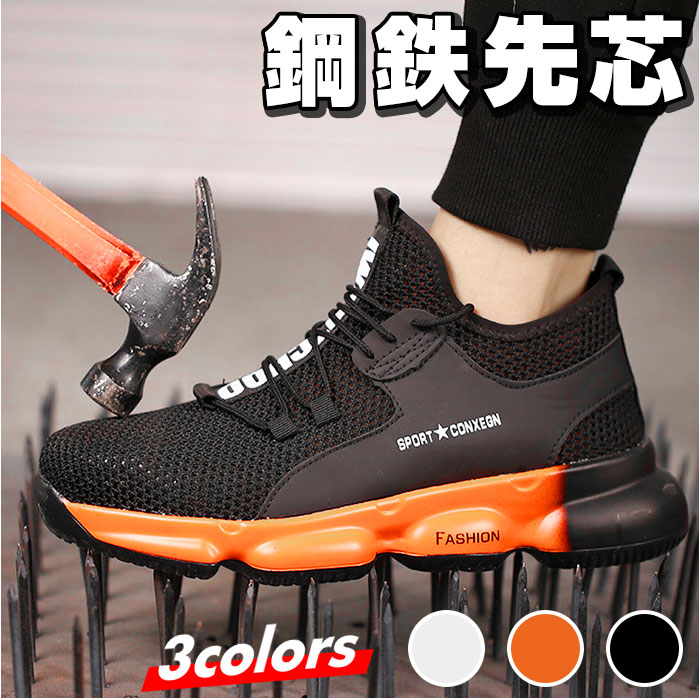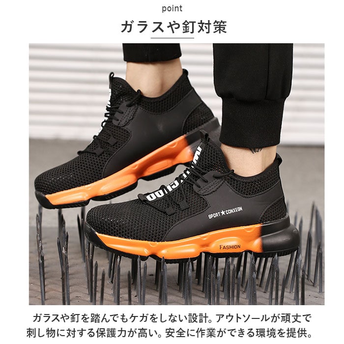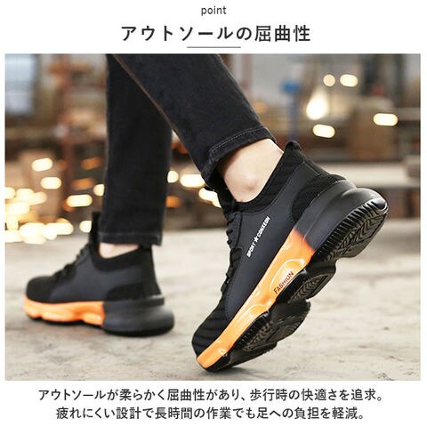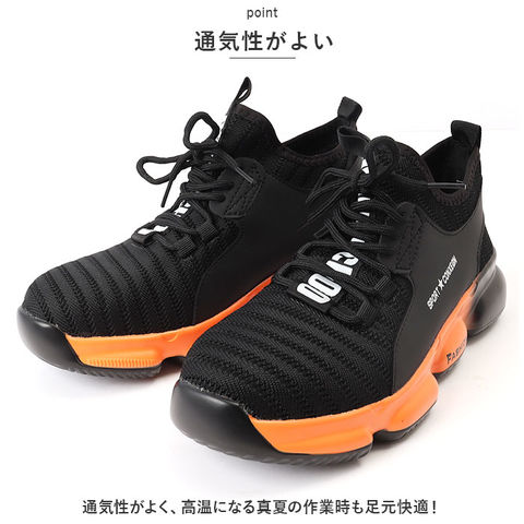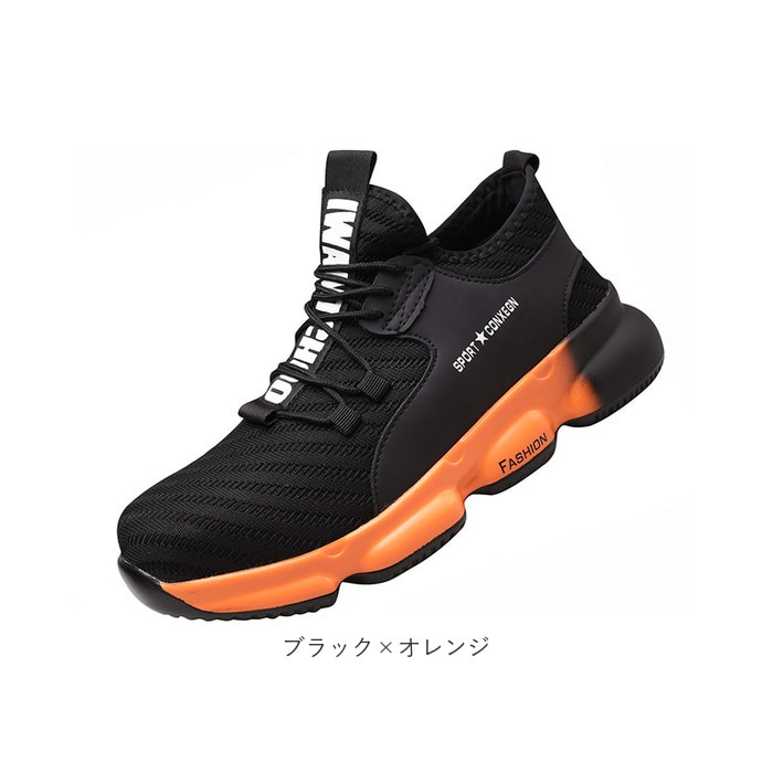 作業靴 pmyshoes8875【ブラック×オレンジ】【43(26.5cm)】