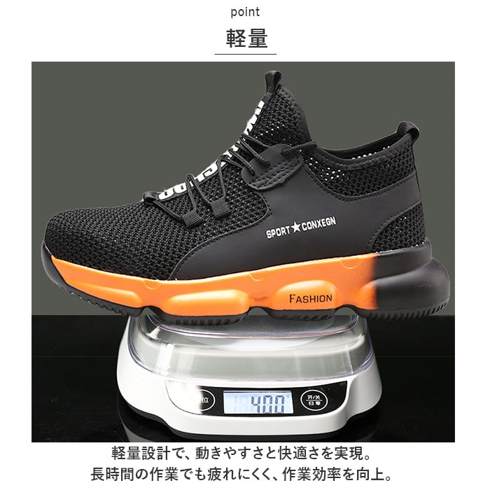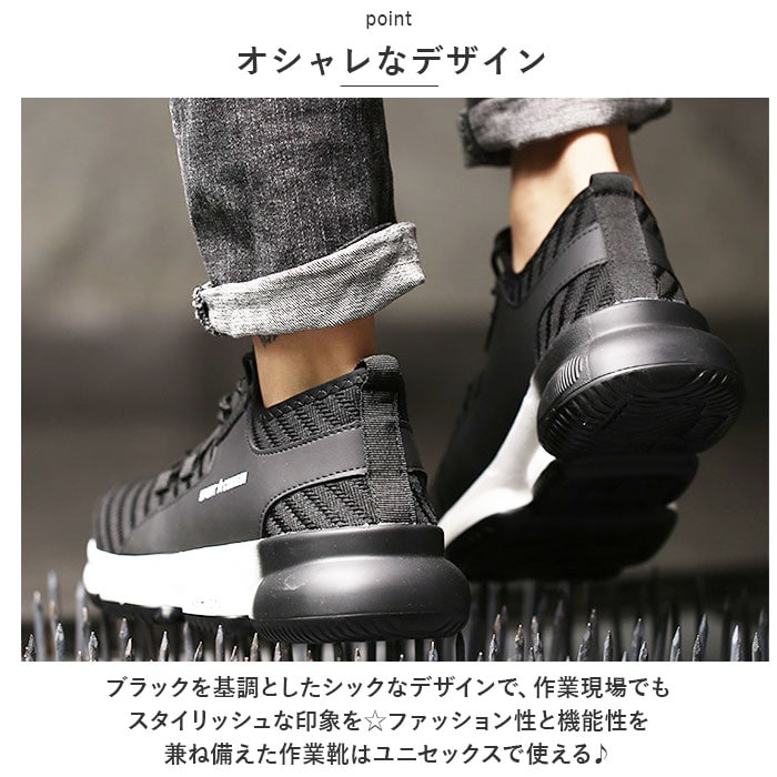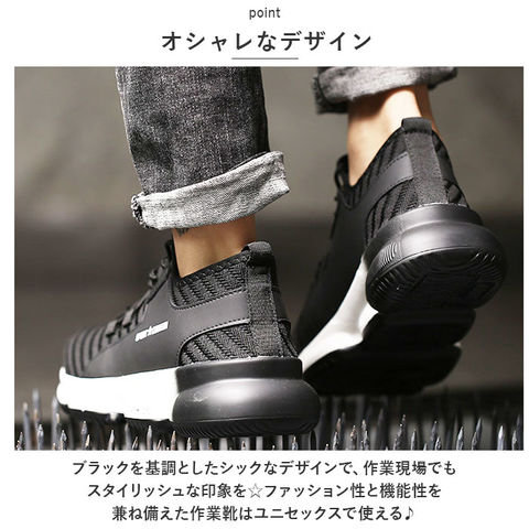 | 商品説明 | 作業現場での信頼性を高めるユニセックスで使える丈夫な作業靴。【安心して作業に集中】長時間の使用でも破損しにくく、安心して作業に集中できる耐久性に優れた作業靴。【つま先保護】つま先部分が強化され、石が落ちてきても痛くない。作業中のアクシデントから足を守り、安全性を確保。【ガラスや釘対策】ガラスや釘を踏んでもケガをしない設計。アウトソールが頑丈で刺し物に対する保護力が高い。安全に作業ができる環境を提供。【アウトソールの屈曲性】アウトソールが柔らかく屈曲性があり、歩行時の快適さを追求。疲れにくい設計で長時間の作業でも足への負担を軽減。【軽量】軽量設計で、動きやすさと快適さを実現。長時間の作業でも疲れにくく、作業効率を向上。【凸凹アウトソール】大きな凸凹が特徴のアウトソールは、柔らかく履き心地も◎凸凹面や脚立などの昇り降り時にグリップとして活躍。【通気性がよい】通気性がよく、高温になる真夏の作業時も足元快適!【いつも清潔】インソールは取り外し可能で、お手入れがしやすく、いつも清潔!【オシャレなデザイン】ブラックを基調としたシックななデザインで、作業現場でもスタイリッシュな印象を☆ファッション性と機能性を兼ね備えた作業靴はユニセックスで使える♪ |