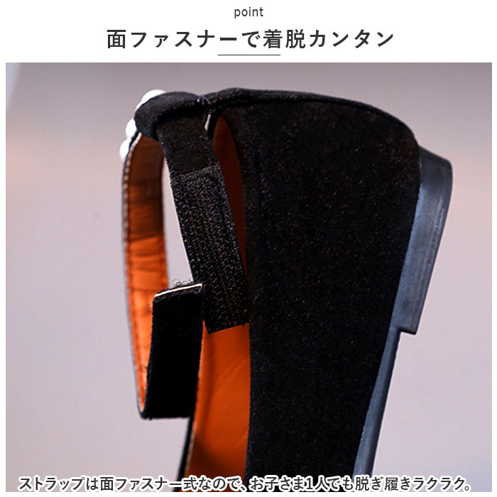 | 商品説明 | 足元もおしゃれに♪キュートなフォーマルシューズが登場。【秋冬に活躍する1足】しっとりとしたスエード調の素材を使い、秋冬コーデと相性ぴったり。つま先部分にはストーンを散りばめた立体的なリボン、ストラップにはイミテーションパールなどをプラス。【面ファスナーで着脱カンタン】ストラップは面ファスナー式なので、お子さま1人でも脱ぎ履きラクラク。【歩きやすさが向上】屈曲性があり、つま先がやや上を向いた形状。つまづきにくく、蹴り上げやすい!【安定感のあるヒール】前後の差を抑えたほぼフラットなソール。滑りにくい素材で、濡れた路面でも安心。【フォーマルシーンで】発表会やパーティーなどのお呼ばれシーンで大活躍!お気に入りのシューズを履いて、気分もアップ♪ |