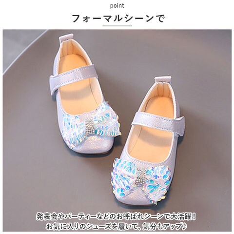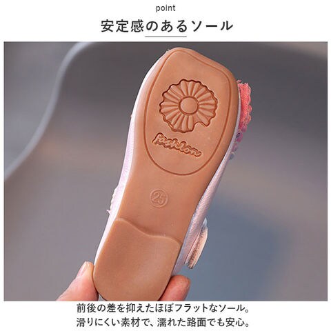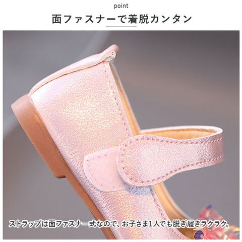 | 商品説明 | 足元もおしゃれに♪キュートなフォーマルシューズが登場。【可愛さアップのポイント】上品な光沢のある仕上がり。つま先部分に配置された立体的なリボンには、キラッと光るストーンやスパンコールなどをプラス。【面ファスナーで着脱カンタン】ストラップは面ファスナー式なので、お子さま1人でも脱ぎ履きラクラク。【歩きやすさが向上】屈曲性があり、つま先がやや上を向いた形状。つまづきにくく、蹴り上げやすい!【安定感のあるソール】前後の差を抑えたほぼフラットなソール。滑りにくい素材で、濡れた路面でも安心。【フォーマルシーンで】発表会やパーティーなどのお呼ばれシーンで大活躍!お気に入りのシューズを履いて、気分もアップ♪ |