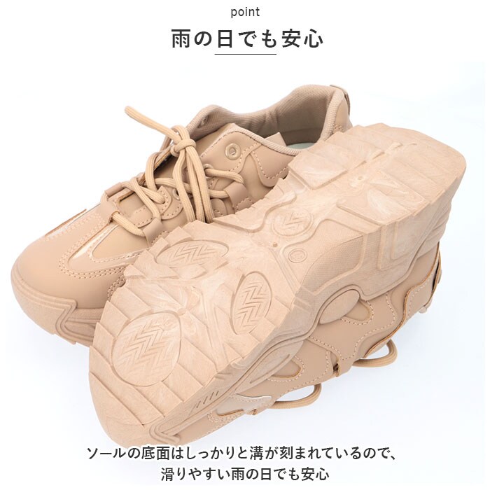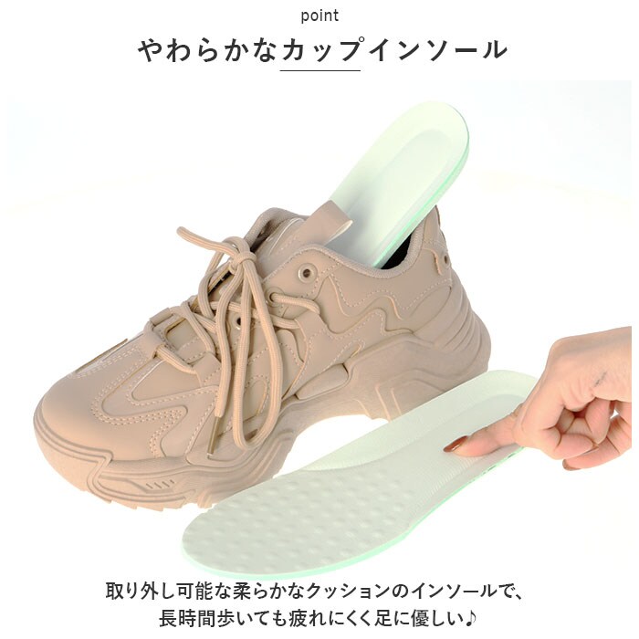 | 商品説明 | エナメル調のアクセントがおしゃれな厚底スニーカーが登場!【かかとの張り出したおしゃれなチャンキーソール】スタイリッシュに見えるかかと部分が張り出したデザインが特徴のチャンキーソールで、安定感があるので歩きやすい。【スタイルアップ】ボリュームあるアウトソールは履くだけで自然とスタイルアップ!【雨の日でも安心】ソールの底面はしっかりと溝が刻まれているので、滑りやすい雨の日でも安心。【やわらかなカップインソール】取り外し可能な柔らかなクッションのインソールで、長時間歩いても疲れにくく足に優しい♪【こなれ感のあるスタイリングに】ベロとアッパー部分に光沢のあるエナメル調のアクセントで、きれいめコーデの外しアイテムとしてもオススメ♪カジュアルになりすぎず、こなれ感のあるスタイリングを演出! |
