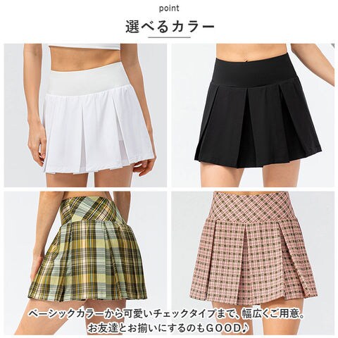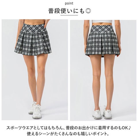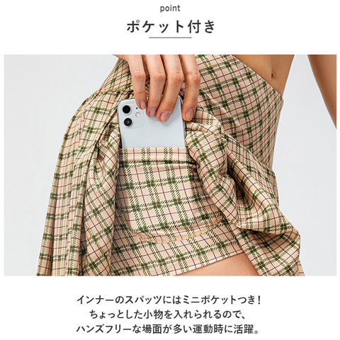 | 商品説明 | テニスやゴルフ、ランニングなどのスポーツウエアからお出かけ着にも使える!インナースパッツ付きで安心のスカートが登場。【スポーツ時に】ゴルフやテニス、ランニングなどのスポーツシーンにぴったりな、インナーのスパッツと一体型のスカート。運動時にも可愛らしさを大切にしたい女性にオススメのアイテム。【プリーツスカート】ふわっと広がるプリーツスカートが上品さをプラス。スポーツ時の動きをヒラリとキレイに魅せてくれる優れモノ♪【動きやすい◎】ウエストはゴム仕様。締め付け感が少ないので動きやすい。生地全体が伸縮性に優れ、スポーツ時の動きを邪魔しない◎【ポケット付き】インナーのスパッツにはミニポケットつき!ちょっとした小物を入れられるので、ハンズフリーな場面が多い運動時に活躍。【普段使いにも◎】スポーツウエアとしてはもちろん、普段のお出かけに着用するのもOK♪使えるシーンがたくさんなのも嬉しいポイント。【選べるカラー】ベーシックカラーから可愛いチェックタイプまで、幅広くご用意。お友達とお揃いにするのもGOOD♪ |