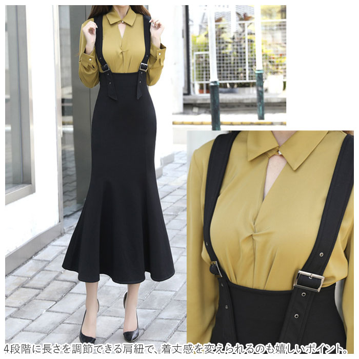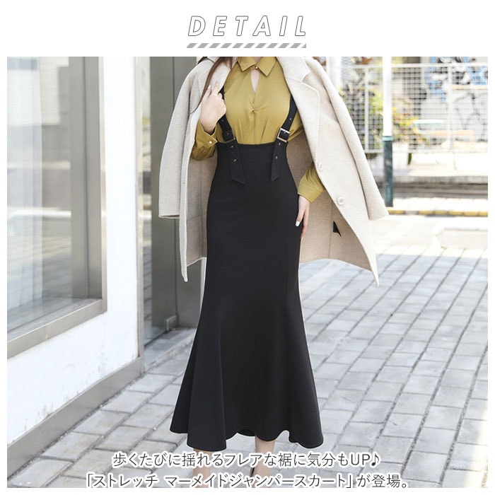 | 商品説明 | 歩くたびに揺れるフレアな裾に気分もUP♪「ストレッチ マーメイドジャンパースカート」が登場。ロング丈でヒップラインを美しくみせてくれる、すっきりとしたシルエットが魅力。4段階に長さを調節できる肩紐で、着丈感を変えられるのも嬉しいポイント。しわになりにくい素材を使用。伸縮性もあり着心地も抜群。ハイウエストタイプでスタイルアップを叶えてくれるデザイン。きれいめからカジュアルまで、様々なコーディネートが楽しめる1着。 |