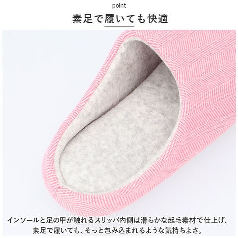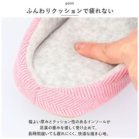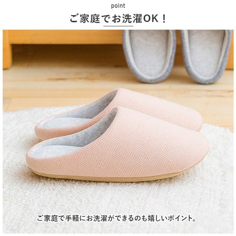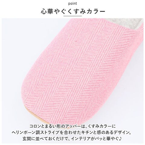 | 商品説明 | ふんわりクッションで、足元リラックス♪オールシーズン快適に履ける「ソフトスリッパ」が新登場。【心華やぐくすみカラー】コロンとまるい形のアッパーは、くすみカラーにヘリンボーン調ストライプを合わせたキチンと感のあるデザイン。玄関に並べておくだけで、インテリアがパッと華やぐ♪【ふんわりクッションで疲れない】程よい厚みとクッション性のあるインソールが足裏の重みを優しく受け止めて、長時間履いても疲れにくく、快適な履き心地。【素足で履いても快適】インソールと足の甲が触れるスリッパ内側は滑らかな起毛素材で仕上げ、素足で履いても、そっと包み込まれるような気持ちよさ。【滑りにくい底面加工】スリッパ底面には、パタパタ音のしにくいポリエステルスエードを使用。かかと部分にはフローリングの床でも安心な滑り止めパッチ付き。【ご家庭でお洗濯OK!】汚れが気になったら、ご家庭で手軽にお洗濯ができるのも嬉しいポイント。(※優しく手洗いしてください。タンブラー乾燥、ドライクリーニングはご利用いただけません。)【ご家族でリンクコーデも◎】カップルやファミリーでコーディネートできる、26cm~30cmまでの幅広いサイズ展開。(※カラーにより、お取り扱いサイズが異なります。ピンク・オレンジは26cmから28cmまで。ベージュは26cm~29cmまで。ネイビーは28cmから30cmまでとなります。ご注意ください。)【普段使いにも、来客用にも】お料理やお掃除など立ち仕事の多いママさんに嬉しいふわふわソフトスリッパ。リラックスタイムに履くのはもちろん、来客用スリッパにも最適。 |