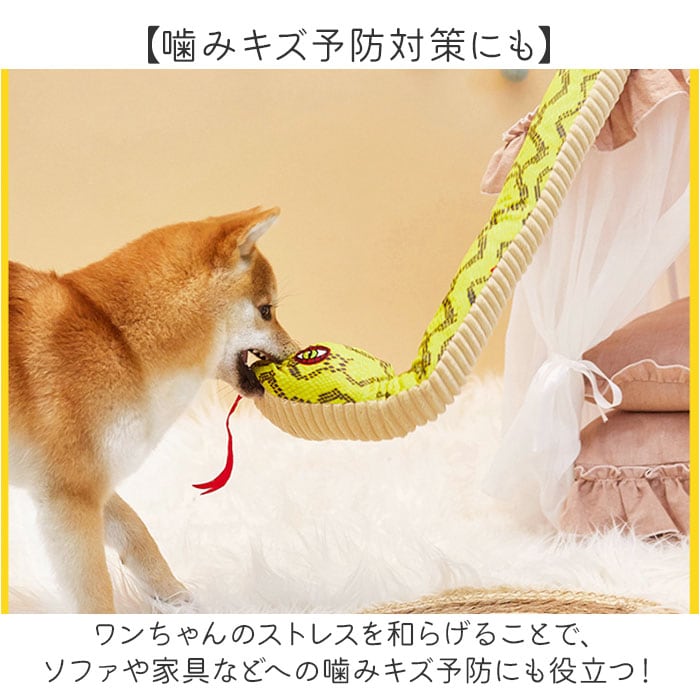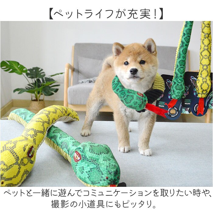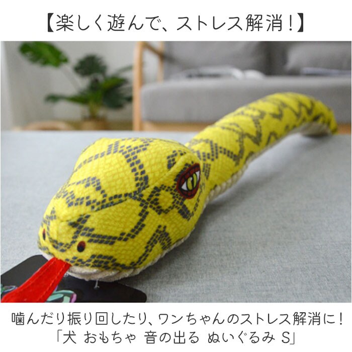 | 商品説明 | 【楽しく遊んで、ストレス解消!】噛んだり振り回したり、ワンちゃんのストレス解消に!「犬 おもちゃ 音の出る ぬいぐるみ S」【ソフトな感触にワンちゃん夢中】リアルな蛇のぬいぐるみの中には、柔らかなポリエステル綿をたっぷり充填。噛み応え◎【3種類の音が鳴る♪】しっぽには鈴、胴体はカシャカシャ音、さらに頭には音が鳴って楽しい「鳴き笛」付き。(※)鳴き笛が縫い込まれている部位は、ぬいぐるみにより個体差がある場合があります。【耐久性もばっちり!】耐久性に優れた丈夫なつくりで、小型や中型のワンちゃんも遊びごたえたっぷりのミニサイズ!【噛みキズ予防対策にも】ワンちゃんのストレスを和らげることで、ソファや家具などへの噛みキズ予防にも役立つ!【ペットライフが充実!】ペットと一緒に遊んでコミュニケーションを取りたい時や、撮影の小道具にもピッタリ。 |