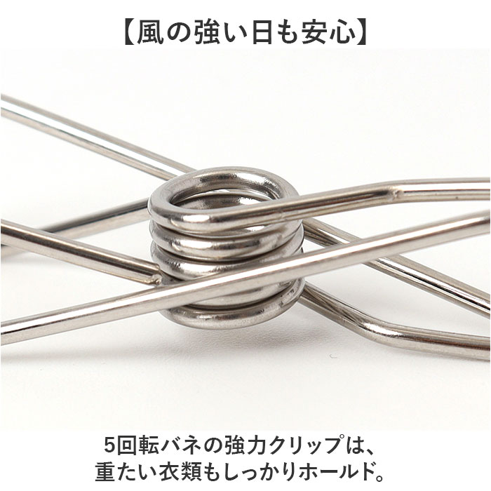 | 商品説明 | 【シンプルで使いやすい!】使い勝手の良いミニサイズ!ステンレス製の洗濯ばさみ 40個セットが登場。【毎日使いに最適なステンレス製】濡れてもサビにくいステンレス製なので、劣化しにくく長く使える!【軽い力で使えてストレスフリー】軽い力でつまめるのでストレスなく使えるのも嬉しいポント。【風の強い日も安心】・5回転バネの強力クリップは、重たい衣類もしっかりホールド。【大事な衣類を傷めない】クリップ部分は凹凸がなく、跡がつきにくいスッキリとしたデザイン。【色々使える40個セット】洗濯物を干すときはもちろん、紙類などをまとめるステーショナリーとしても活躍◎ |