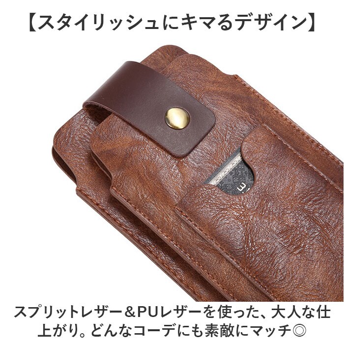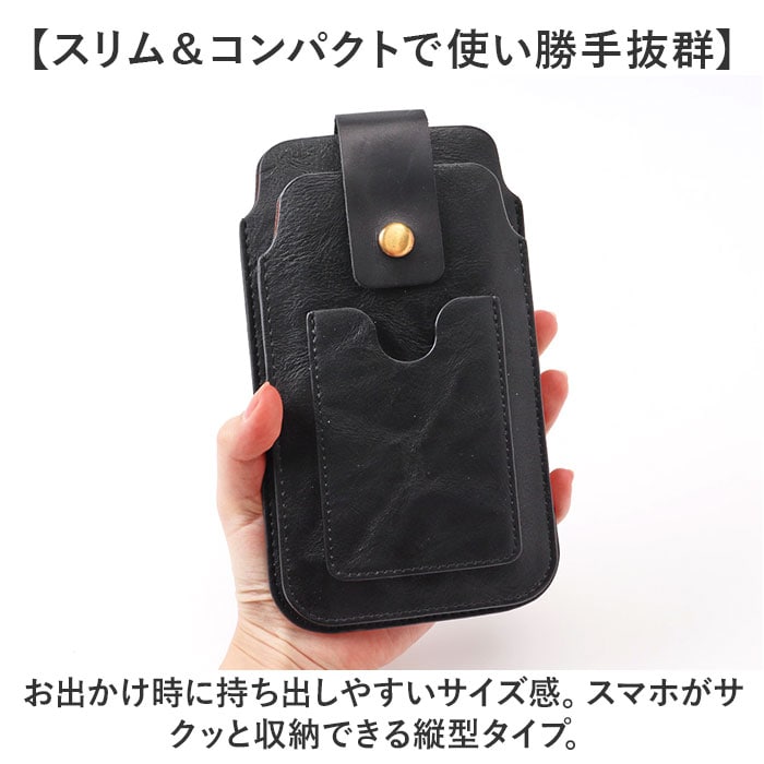 | 商品説明 | 【ミニマルスタイルにおすすめ】ウエストにサッと装着。両手が空いた状態で、身軽にお出かけできる「スマホポーチ」が新登場。【スリム&コンパクトで使い勝手抜群】お出かけ時に持ち出しやすいサイズ感。スマホがサクッと収納できる縦型タイプ。【付け方を選べる便利な2way仕様】ボトムスのベルトループに通したり、カラビナで吊り下げ。お好みでスタイルチェンジ。【マグネットでワンタッチオープン】力いらずで簡単◎ガバっと開いて出し入れしやすく、ベルトで中身の飛び出しもガード。【ラクラク仕分けできる2層式】・2つに分かれた収納ルーム。整理整頓しやすく、中身が一目瞭然。【必要最低限のアイテムをIN】スマホやちょっとした小物を入れておける大きさ。私用と会社用など携帯の2個持ちもOK。【サッと取り出せて迷子知らず】ICカード類を入れておけるフロントポケット、サイドにはペンホルダーも装備◎【スマホに合わせて選べる2サイズ】・5.5インチ対応のSサイズ、6.4インチ対応のMサイズをご用意!【色んなシーンでマルチに活躍】タウンユースだけでなく、旅行やお散歩などにも!1つあれば役立つ万能アイテム。【スタイリッシュにキマるデザイン】スプリットレザー&PUレザーを使った、大人な仕上がり。どんなコーデにも素敵にマッチ◎【ポケット仕様】前面:カードポケット×1 |