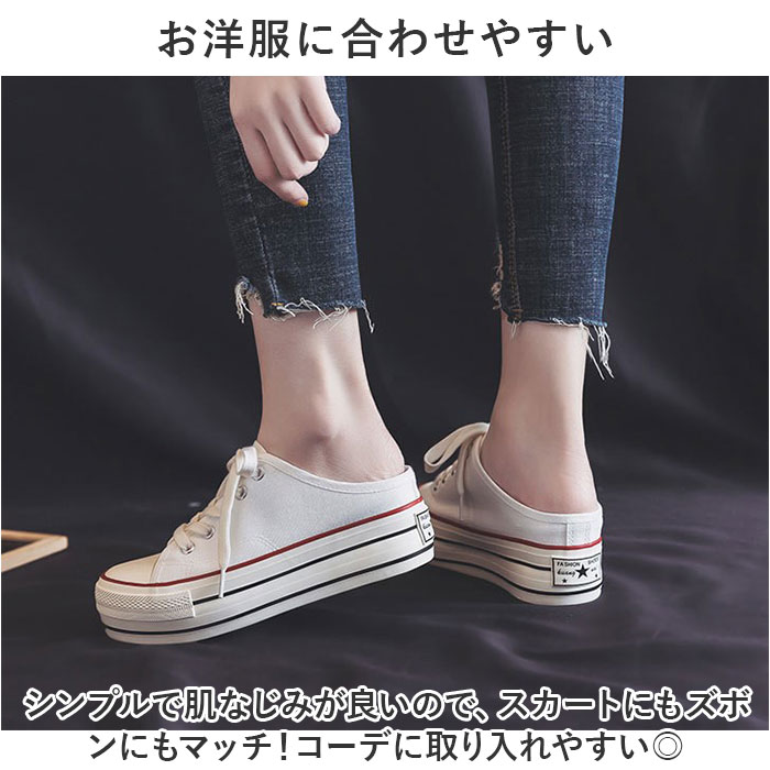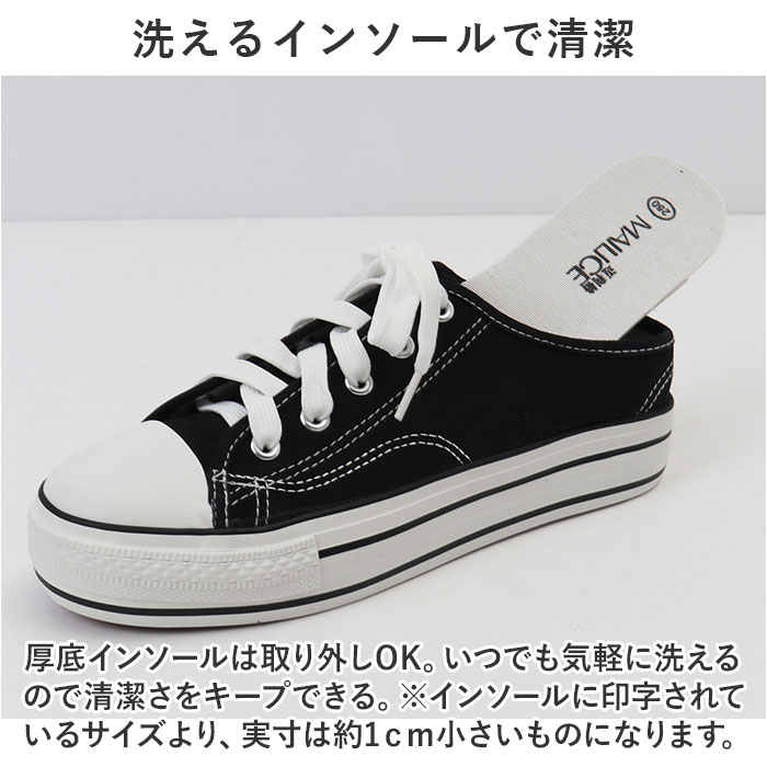 | 商品説明 | 厚底インソール×サボスタイル☆ラフな着こなしが今っぽい!厚底スニーカーが登場。【厚底インソールでこっそり身長UP】インソールは約2.5センチとさりげないヒール感で、こっそり身長UPができる優れモノ!【サボスタイルでラフに着こなす☆】スニーカーに見えて実はサボスタイル☆つっかけるように履くラフさが魅力。今っぽく仕上がる。【ナチュラルなキャンバス地が可愛い】シンプルでナチュラルなキャンバス地が可愛い!配色を抑え、大人っぽく仕上げたデザイン。【お洋服に合わせやすい】シンプルで肌なじみが良いので、スカートにもズボンにもマッチ!コーデに取り入れやすい◎【滑りにくいので雨の日も安心】ソール部分は凸凹加工済み。雨の日の地面もしっかりグリップする、滑りにくい安心仕様。【洗えるインソールで清潔】厚底インソールは取り外しOK。いつでも気軽に洗えるので清潔さをキープできる。※インソールに印字されているサイズより、実寸は約1cm小さいものになります。 |